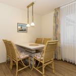 An den Wohnbereich grenzt der Esstisch für bis zu 6 Personen. Die voll eingerichtet Küche befindet sich im geräumigen Flur und ist mit allen Geräten und weiteren Küchenutensilien ausgestattet, die Sie für die Zubereitung Ihrer Mahlzeiten benötigen.