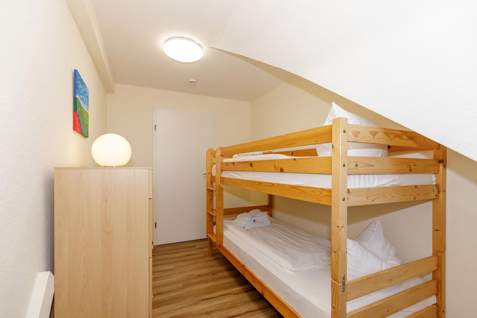 Auch ein geräumiger Kleiderschrank steht Ihnen hier zur Verfügung, in dem Sie Ihre gesamte Urlaubsgarderobe verstauen können. Das 2. Schlafzimmer ist mit einem Etagenbett und 2 Hochkommoden eingerichtet.