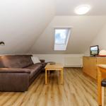 Der Wohnbereich ist mit einem gemütlichen Sofa und Sessel eingerichtet. Hier können Sie nach einem ereignisreichen Urlaubstag entspannen und in geselliger Runde und das Fernsehprogramm am LCD Gerät genießen.