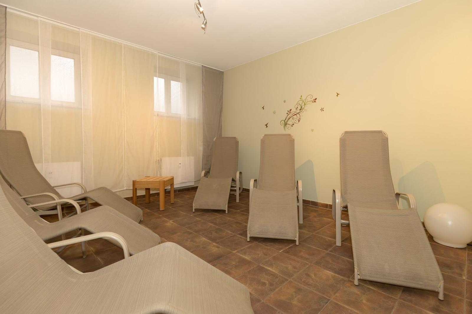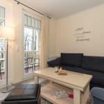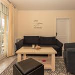 Das große Wohnzimmer ist mit einer Couchgarnitur (Schlafsofa für 2 Personen), Smart-TV, Internetradio und einem Esstisch mit 6 Stühlen ausgestattet.