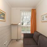 Im zweiten Schlafzimmer ist ein kleines Home Office eingerichtet, wo man bei Bedarf in Ruhe remote arbeiten kann. Dort steht eine ausziehbare Querschläfercoach für zwei Personen sowie ein Kleiderschrank für die Urlaubsgarderobe zur Verfügung.
