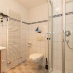 Das Badezimmer ist ausgestattet mit einer Dusche, einem WC, einem Handtuchheizkörper sowie einem Waschtisch mit Unterschrank für Ihre Badutensilien.