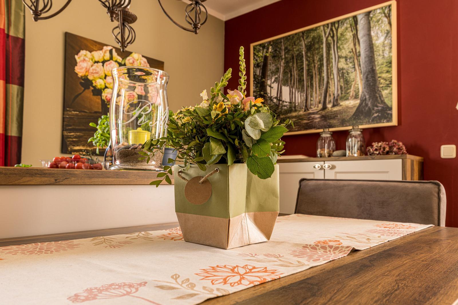 An den Wohnbereich grenzt die offene Küche mit einem integrierten Esstisch für die gemeinsamen Mahlzeiten oder vergnügliche Spieleabende in geselliger Runde.