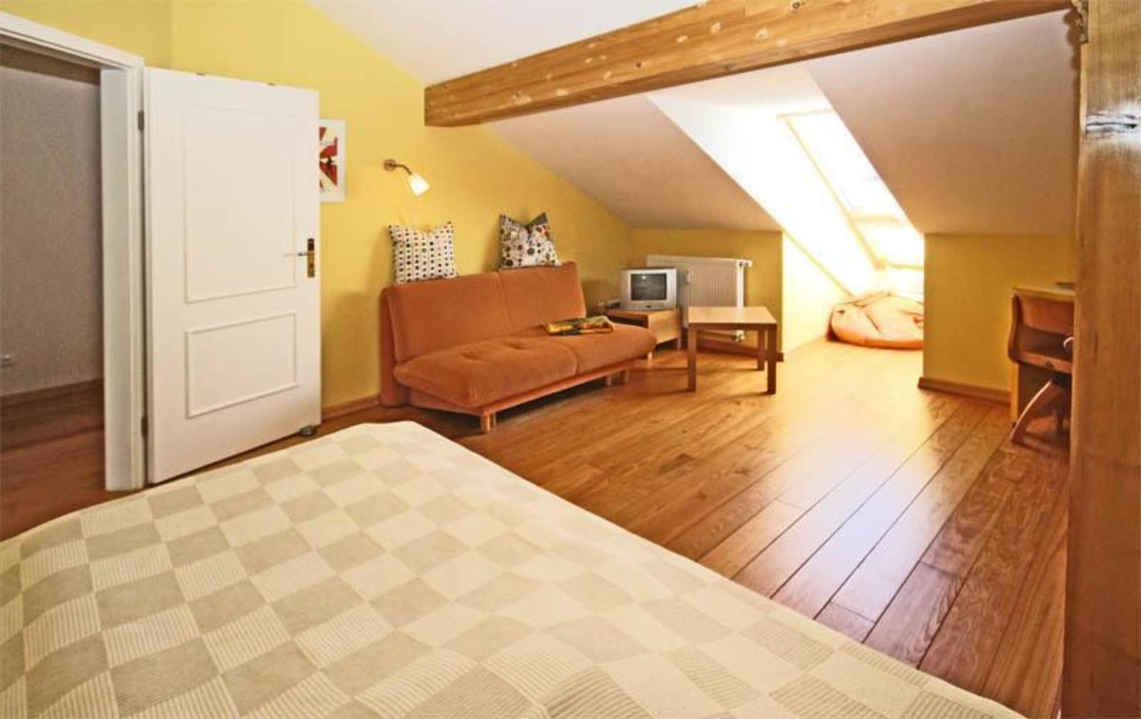Im Obergeschoss der Wohnung befinden sich zwei helle und geräumige Wohn- und Schlafstudios mit fantastischen Ausblicken (Meer bzw. Kühlung/Leuchtturm) von den balkonähnlichen Cabriofenstern. Das erste Studio ist mit einem Doppelbett (1,60 m x 2,00 m), das zweite Schlafstudio mit einem französischen Bett (1,40 m x 2,00 m) und einer Couch ausgestattet.