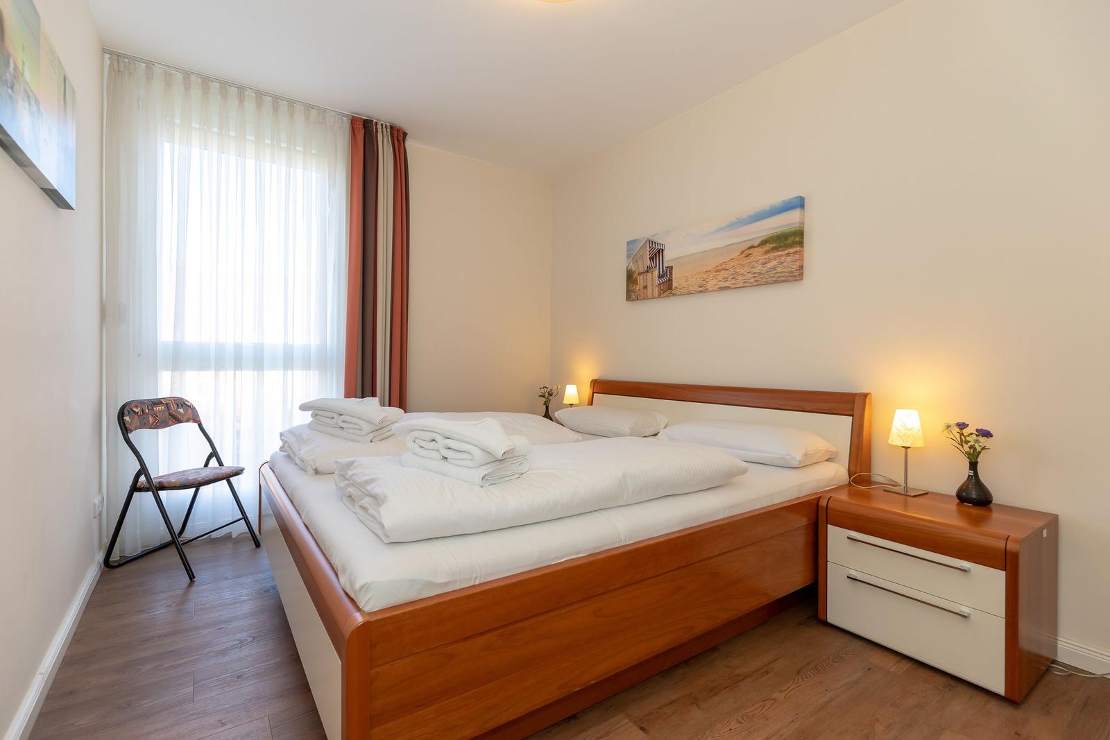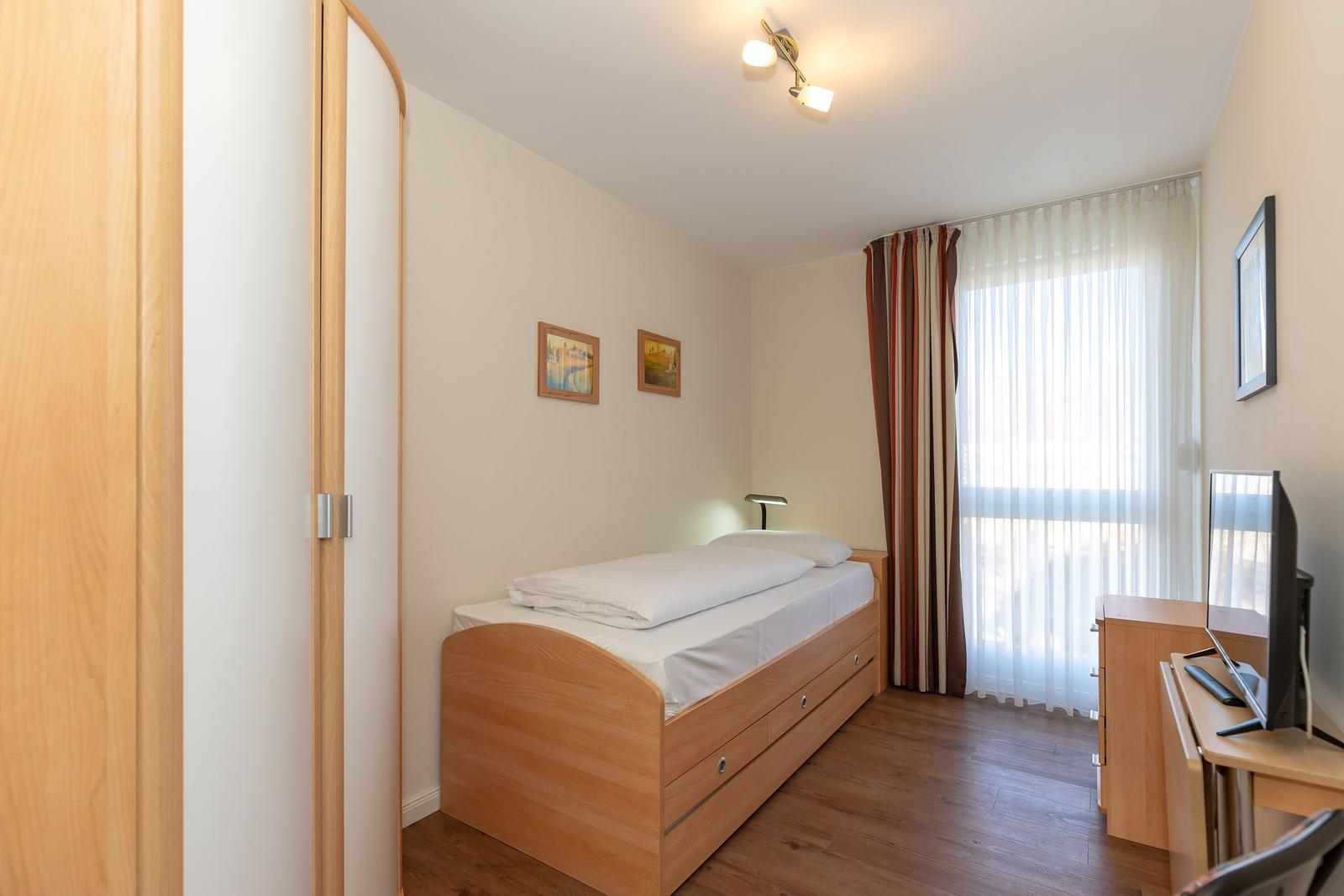 Im 1. Schlafzimmer befindet sich ein komfortables Doppelbett. Zwei Einzelbetten, die Platz für 2 Erwachsene bieten, befinden sich im 2. Schlafzimmer/Kinderzimmer.