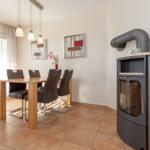 Der große Esstisch bietet ausreichend Platz für alle Familienmitglieder. Hier können Sie sich die gemeinsamen Mahlzeiten in geselliger Runde schmecken lassen oder lustige Spielabende verbringen.