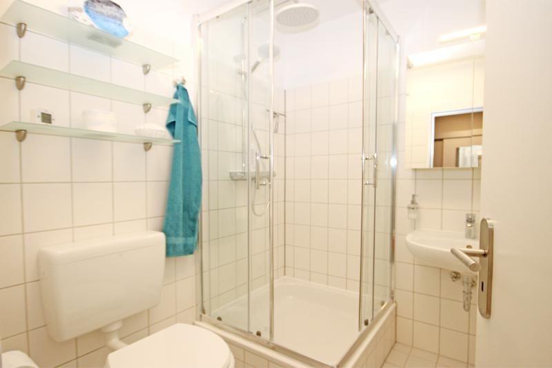 Das Badezimmer ist mit Dusche und WC ausgestattet. In der Dusche finden Sie eine Handbrause sowie eine Regendusche.