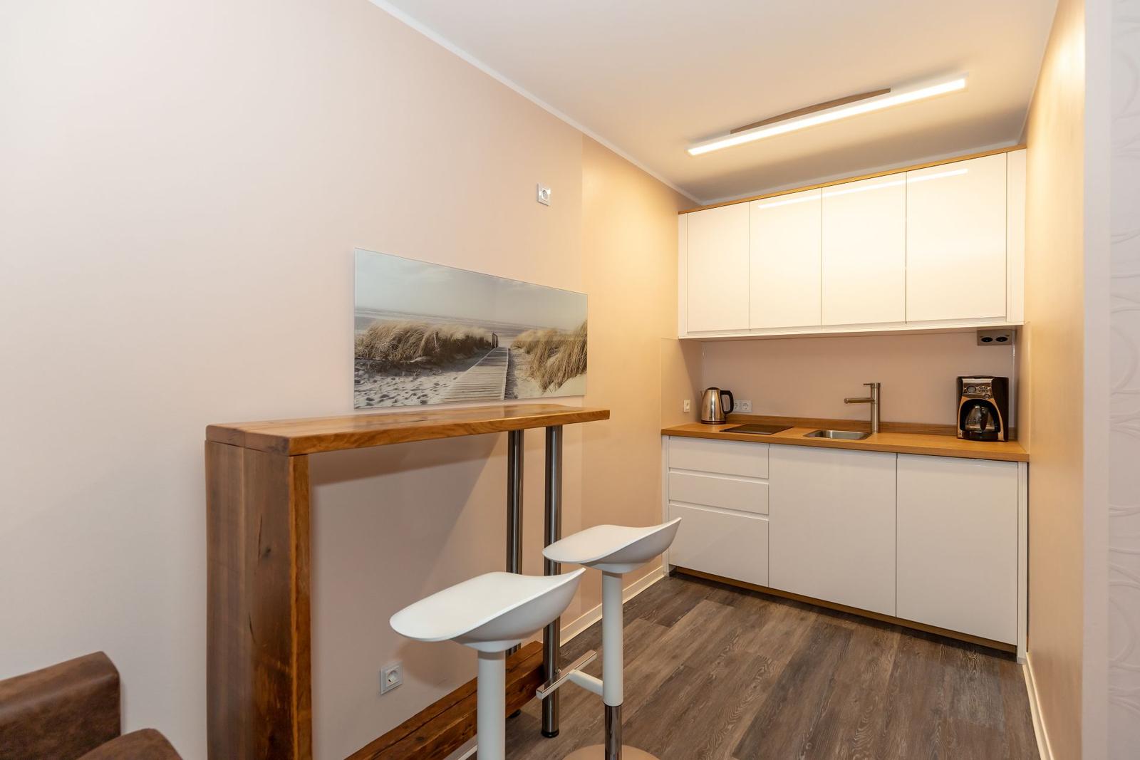 Der Küchenbereich grenzt direkt an den Wohnbereich, sodass auch der Koch oder die Köchin nicht vom Geschehen abgeschnitten sind. Die Küche ist voll ausgestattet, schnell und bequem können Sie Ihre Lieblingsmahlzeit zaubern.