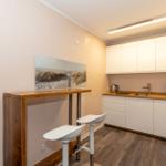 Diese können Sie am Tresen einnehmen oder gemütlich auf der Couch, da der Wohnzimmertisch höhenverstellbar ist.