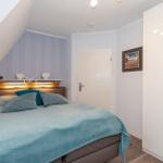 Das Schlafzimmer lädt zu einem Erholungsschlaf ein und der große Kleiderschrank sorgt dafür, dass die Urlaubsgarderobe sicher verstaut werden kann. Ein Extrabett für Kinder gehört auch zur Ausstattung.