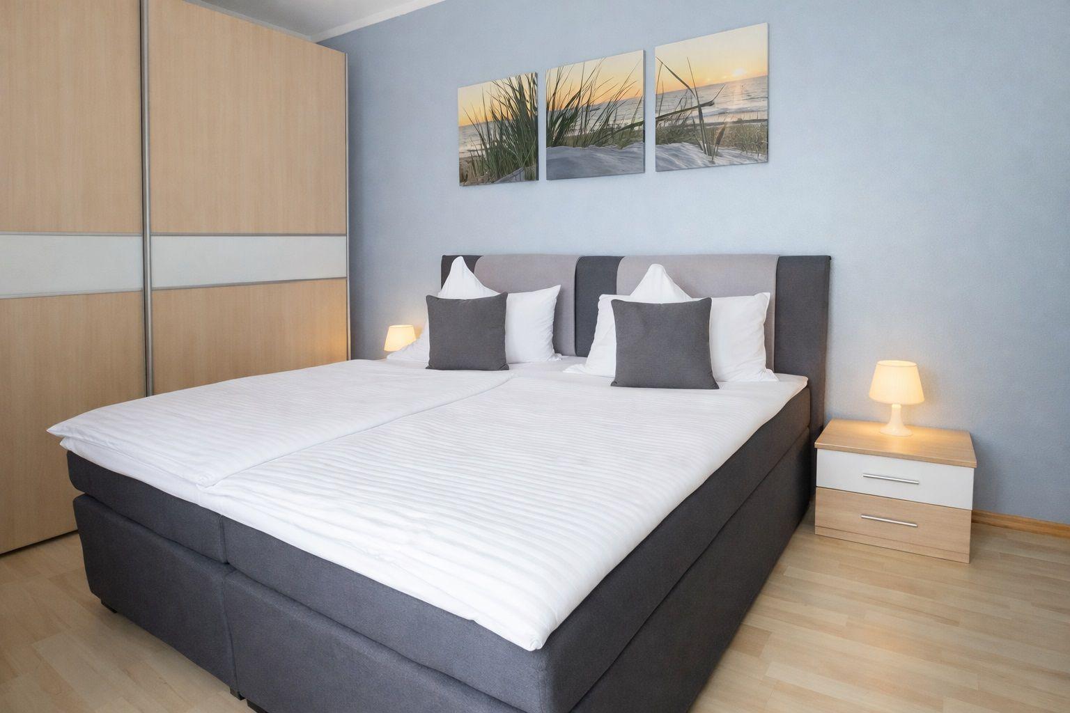 Im Schlafzimmer werden Sie erholsamen Schlaf erleben, und der große Kleiderschrank bietet ausreichend Platz für Ihre Urlaubsgarderobe. Die Matratzen wurden 2025 erneuert.