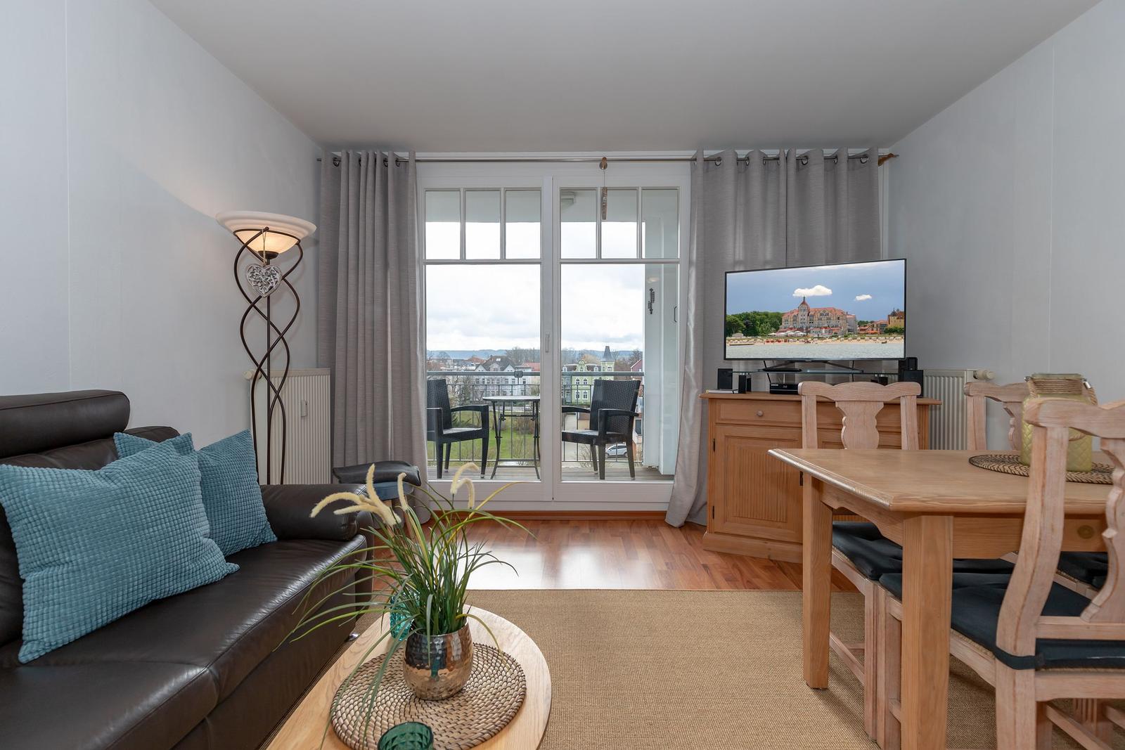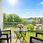 Das Haus verfügt neben einer Tiefgarage und Fahrradkeller über einen Café-Betrieb mit Panorama-Ostseeblick. Hier können Sie sich morgens am Frühstücksbuffet verwöhnen lassen, aber auch täglich frische Brötchen für den Verzehr in der Wohnung erhalten.