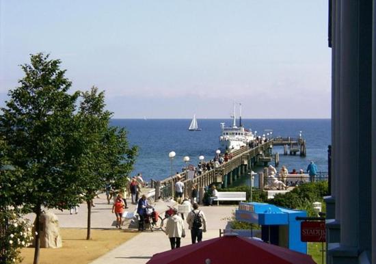 Auch die beliebte Seebrücke erreichen Sie in wenigen Minuten. Hier werden Bootsrundfahrten, z. B. nach Warnemünde, angeboten. Direkt an den großen Brückenvorplatz grenzt die turbulente Strandstraße. Hier herrscht reges Treiben bis in den Abend. Eine Vielzahl von Geschäften verführen zum Stöbern und Shoppen. Hier bekommen Sie alles, was das Herz begehrt. Zahlreiche Restaurants, Cafés, Eisdielen und Bars reihen aneinander. Hier ist Relaxen und Schlemmen angesagt. Für den kleinen Hunger zwischendurch bietet die begehrte Fischbrötchen-Bude ein reichhaltiges Angebot an Leckereien.