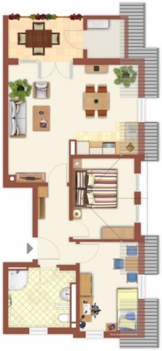 Die geschmackvoll eingerichteten Schlafzimmer bieten Ihnen bequeme Betten und je einen geräumigen Kleiderschrank mit viel Platz für die Urlaubsgarderobe. Das erste Schlafzimmer verfügt über ein Doppelbett, das zweite Schlafzimmer über 2 Einzelbetten.