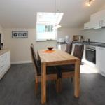 An den Wohnbereich grenzen ein großer Esstisch, an dem alle Familienmitglieder ihren Platz finden, und eine exklusiv eingerichtete, voll ausgestattete, offene Küche. Hier stehen Ihnen alle technischen Geräte und weitere Küchenutensilien zur Verfügung, die in einer modernen Küche nicht fehlen dürfen.