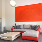 Das modern gestaltete Wohnzimmer verfügt über ein bequemes Sofa, das mit wenigen Handgriffen zu einer Schlafcouch umfunktioniert werden kann. Für Ihre Unterhaltung sorgen ein Flachbildschirm-Gerät sowie eine HiFi-Anlage. In diesem ansprechenden Wohnbereich können Sie harmonische Momente mit der ganzen Familie erleben.