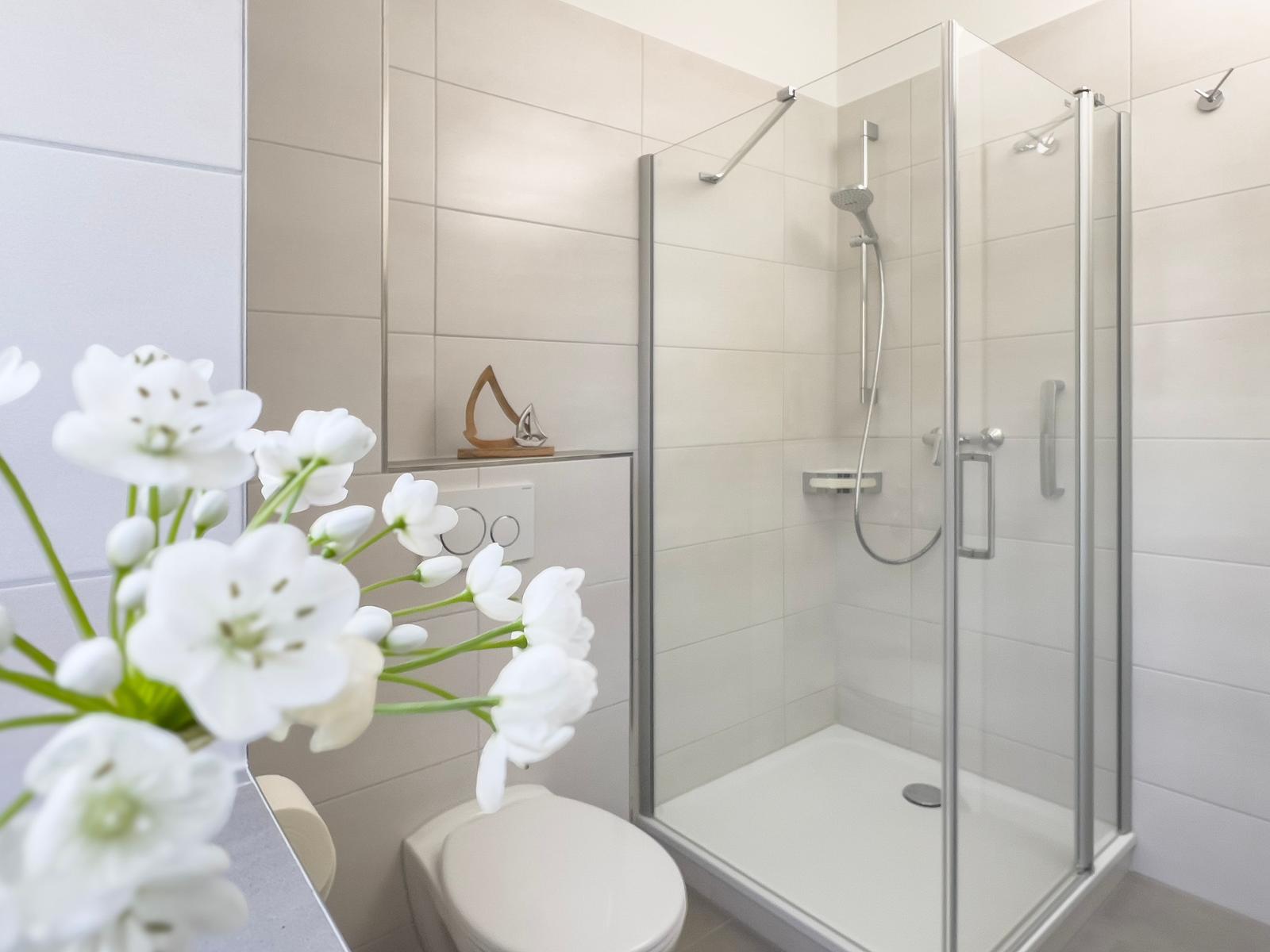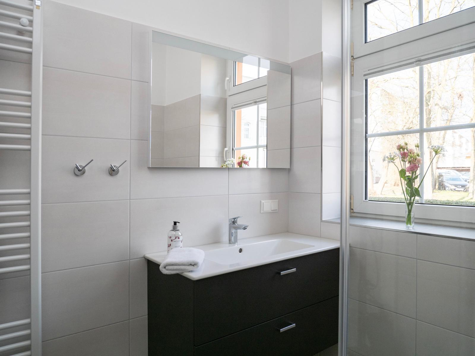 Auch Ablageflächen für Ihre Badutensilien sind ausreichend vorhanden.