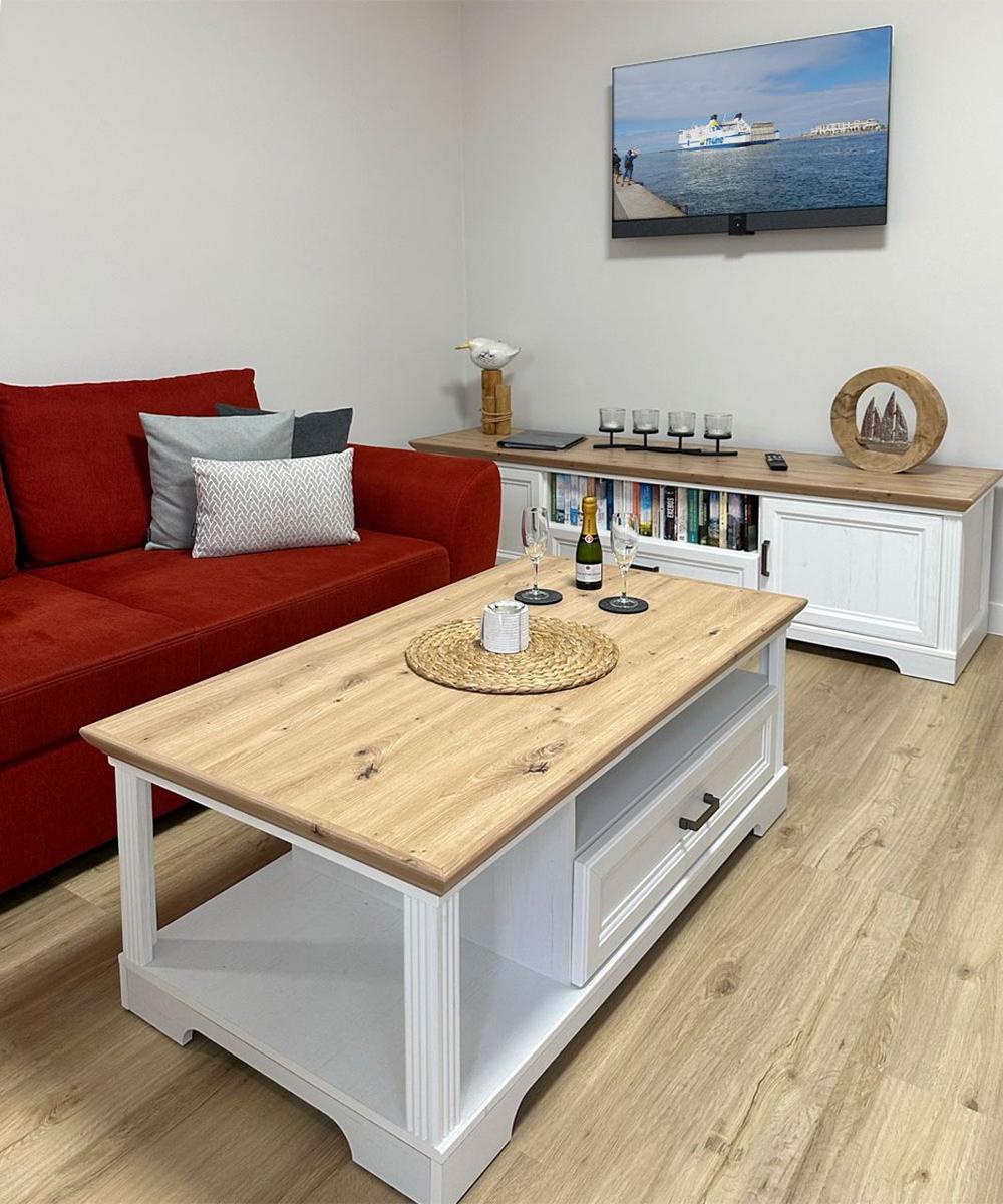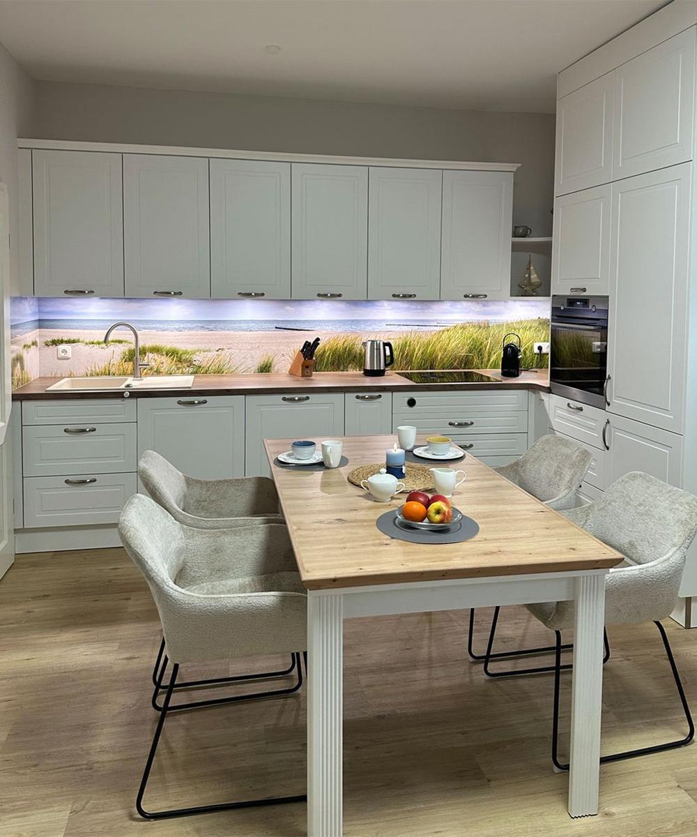 Das Ambiente der Ferienwohnung besticht durch nordischen Landhausstil mit hohem Komfort.