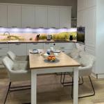 Hier stehen Ihnen ein Induktionskochfeld mit integriertem Bora-Kochfeldabzug, ein separater Backofen, eine Geschirrspülmaschine, eine Mikrowelle , eine Nespressomaschine, eine Kaffeemachine, ein Wasserkocher… in großzügigem Umfang stehen alle benötigten Küchenutensilien zur Verfügung.