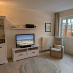 Das gemütliche Wohnzimmmer ist mit einer komfortablen Sofaecke eingerichtet. Hier können Sie es sich nach einem ereignisreichen Strandtag mit der Familie gemütlich machen. Zu Ihrem Entertainment stehen Ihnen ein großer Flatscreen und ein CD-Radio zur Verfügung. Das Sofa lässt sich schnell und einfach zu einer weiteren Schlafmöglichkeit für eine Person umbauen.