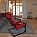 Das großzügige Wohnzimmer ist mit einem Relax-Sessel und einem bequemen und hochwertigen Sofa ausgestattet, das sich mit wenigen Handgriffen zu einer Schlafcouch mit Matratze für eine 3. Person umfunktionieren lässt. In diesem Bereich befindet sich ebenso der Esstisch für 4 Personen für die gemeinsamen Mahlzeiten oder fröhliche Spielabende.