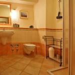 Das Badezimmer verfügt über eine ebenerdige Dusche, ein WC, ein Waschbecken, einen Kosmetikspiegel, einen Föhn und Fußbodenheizung.
