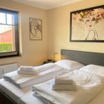 Die geräumige Wohnung befindet sich im Erdgeschoss des Hauses 3. Die maritimen Farben der Umgebung spiegeln sich in dieser Wohnung wieder.