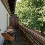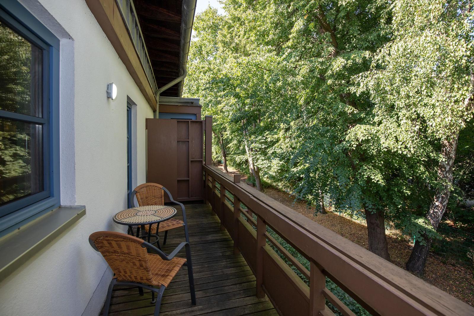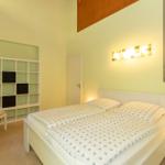 Über eine sichere Wendeltreppe gelangen Sie ins Maisonette der Wohnung. Hier befindet sich ein weiterer offener Flurbereich mit kleinem Schreibtisch, sowie ein durch bodentiefe Verglasung abgetrennter und verschließbarer weiterer Schlafbereich mit ausziehbarem Doppelbett. An den Maisonette-Bereich schließt sich ein weiterer überdachter Balkon für beispielsweise gemütliche Abendstunden bei einem Glas Wein an.