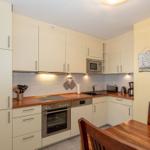 Die komplett ausgestattete, separate Küche verfügt nebst Backofen mit 4-Platten-Cerankochfeld außerdem über Mikrowelle, Toaster, Wasserkocher, Kaffeemaschine, Geschirrspüler, Kühl- sowie separaten Gefrierschrank und natürlich genügend Geschirr und Besteck. In der Küche ist ein großer Esstisch mit Platz für bis zu 4 Personen integriert. Von der Küche aus erreichen Sie den 2. Balkon sodass man von hier aus die Möglichkeit hat, bei einem heißen Kaffee die frische Ostseeluft zu genießen.
