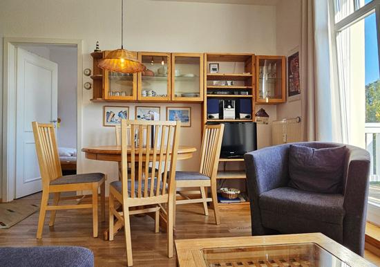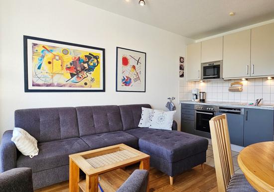 Die 53 m² große Ferienwohnung „Parkblick 22“ in der Residenz Parkblick eignet sich ideal für 2 Personen und bietet eine geschmackvolle Einrichtung. Das helle Wohnzimmer ist mit einer gemütlichen Sofaecke, einem Flachbild-TV und einem Essbereich ausgestattet. Die moderne Küche verfügt über einen Herd, Backofen, Kühlschrank mit Gefrierfach, Mikrowelle, Geschirrspüler, Kaffeemaschine und Wasserkocher, was sie ideal für Selbstversorger macht. Eine offene Schlafgalerie beherbergt ein großes Doppelbett sowie einen geräumigen Kleiderschrank für ausreichend Stauraum. Das Badezimmer ist modern gestaltet und verfügt über eine große Dusche, ein Waschbecken und ein WC. WLAN, ein PKW-Stellplatz und ein Fahrradabstellraum sind ebenfalls vorhanden. Die Lage der Wohnung ermöglicht es, den Strand und die Flaniermeile „Strandstraße“ in wenigen Gehminuten zu erreichen.