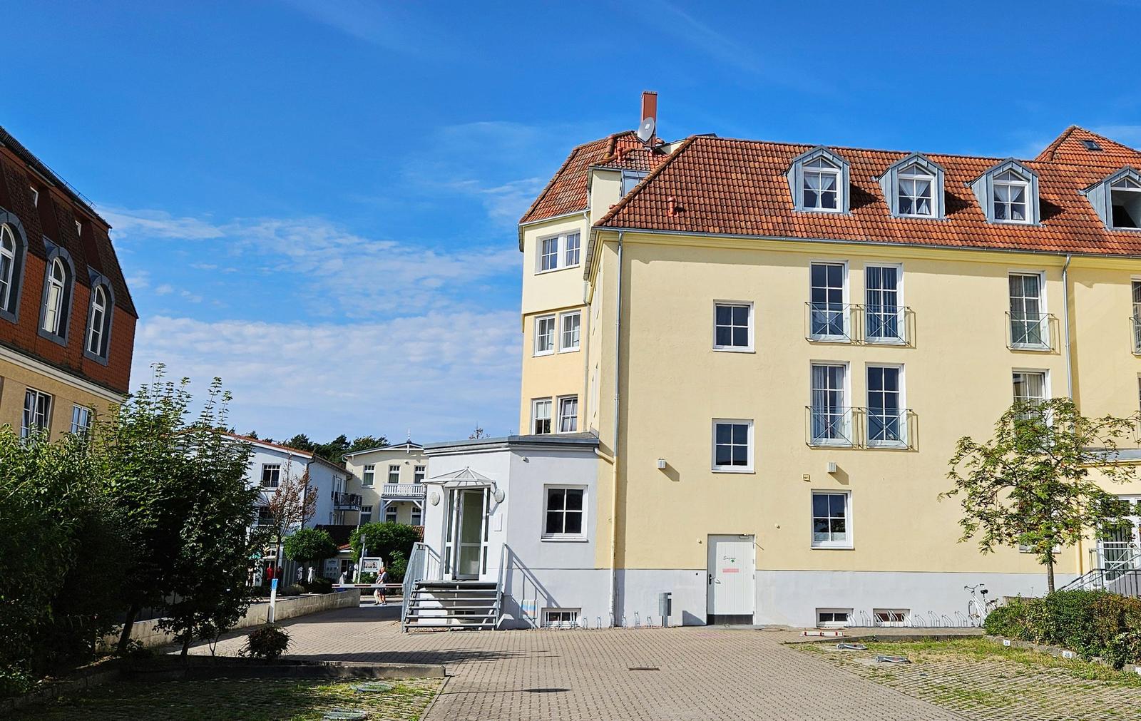Die Ferienwohnung Ingeborg 08 liegt im ersten Obergeschoss einer modernen Unterkunft in Kühlungsborn Ost. Die Lage an der Haupteinkaufsstraße ermöglicht den Gästen einfachen Zugang zu einer Vielzahl von Geschäften und Restaurants. Der nächste Bäcker, ideal für frische Brötchen am Morgen, ist ebenfalls in unmittelbarer Nähe. Nur wenige Gehminuten entfernt erstreckt sich der Strand, der zu entspannten Tagen am Meer einlädt. Die Umgebung bietet zahlreiche Freizeitmöglichkeiten, darunter Wassersport, Rad- und Wanderwege. Die Anreise gestaltet sich ebenfalls unkompliziert; ein Parkplatz steht direkt im Hof der Unterkunft zur Verfügung. Gästen wird empfohlen, sowohl Bettwäsche als auch Handtücher mitzubringen, sofern kein Wäschepaket angemietet wird.