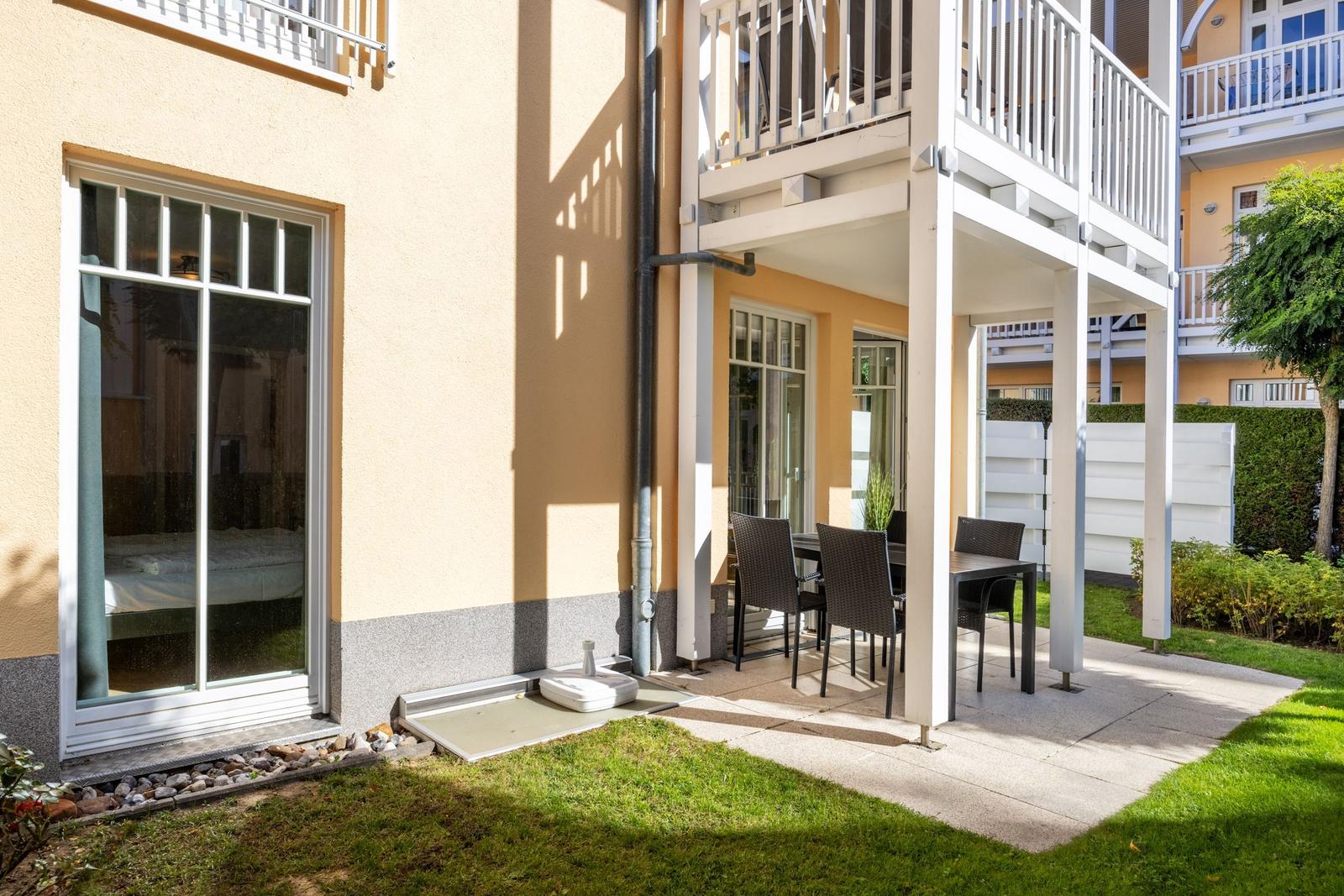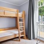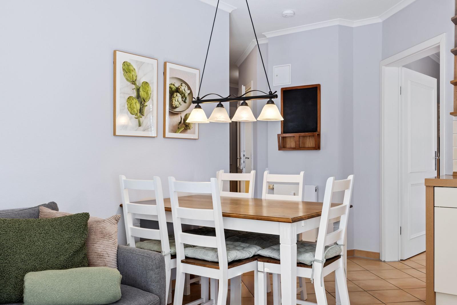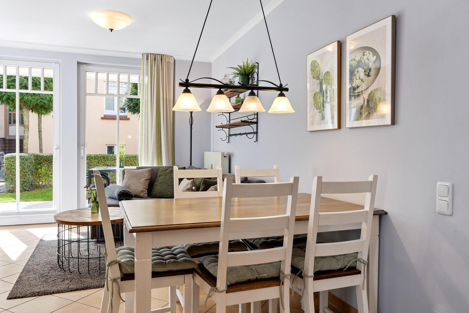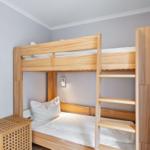 Die Ferienwohnung überzeugt durch großzügige und barrierefreie Räume, die sowohl Komfort als auch moderne Ausstattung bieten. Die offene Küche ist mit einem Geschirrspüler, einem Elektro-/Gasherd, einer Mikrowelle, einem Kühlschrank, einer Kaffeemaschine, einem Toaster, einem Wasserkocher sowie einem Mixer vollständig ausgestattet. Im Wohnbereich befindet sich eine Schlafcouch, die zusätzlichen Platz bietet, und ein Essbereich lädt zum Verweilen ein. Die beiden Schlafzimmer sind mit einem Doppelbett sowie zwei Einzelbetten ausgestattet und bieten Ruhe und Erholung. Das Duschbad punktet mit einer bodengleichen Dusche, einem Haartrockner und einem Kosmetikspiegel. Zur Unterhaltung stehen eine HiFi-Anlage, ein TV sowie ein DVD-/Blu-Ray-Player zur Verfügung. Ein Parkplatz und ein Fahrstuhl erleichtern den Zugang. Die Wohnung ist allergikergeeignet und mit modernen Annehmlichkeiten, wie Rauchmeldern und Staubsauger, ausgestattet. Ein Sonnenschirm steht ebenfalls bereit.