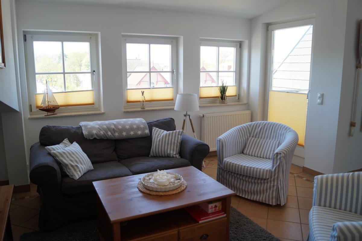 Die fast 60 m² große Ferienwohnung in Kühlungsborn-West bietet einen willkommenen Rückzugsort mit maritime Akzenten und einem Balkon, der einen schönen Blick bietet. Im zweiten Obergeschoss gelegen (kein Fahrstuhl), umfasst die Wohnung einen großzügigen Wohnraum mit gemütlicher Sitzecke, einem großen LCD-Flachbild-Fernseher und einem Ofen für eine behagliche Atmosphäre. Die integrierte Küche ist vollständig ausgestattet und verfügt über einen Esstisch. Das große Schlafzimmer bietet eine ansprechende Wohnatmosphäre mit einem weiteren Flachbild-TV und einem geräumigen Kleiderschrank. Eine kleine Kammer, ideal für Kinder, bietet Platz für ein Doppelbett und Stauraum für Spielzeug. Das Badezimmer ist mit Dusche, WC und Fön ausgestattet. Ein Parkplatz steht direkt hinter dem Haus zur Verfügung, Fahrräder können im Fahrradkeller untergebracht werden. Geschäfte und Restaurants sind in unmittelbarer Nähe.
