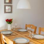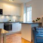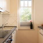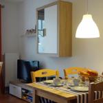 Das Rahlfs Hus bietet eine attraktive Ferienwohnung Nr. 5 im ersten Obergeschoss, die sich auf ca. 50 m² erstreckt und für 2 bis 4 Personen geeignet ist. Die Wohnung besteht aus einem separaten Schlafzimmer mit einem Doppelbett sowie einem Wohnraum, der eine integrierte Küchenzeile, eine Sitz- und Essecke sowie eine Couch enthält, die als Schlafmöglichkeit für bis zu zwei zusätzliche Gäste dient. Die moderne Küche ist mit einem Backofen, Ceran-Kochfeld, Mikrowelle und Geschirrspülmaschine ausgestattet. Das Badezimmer verfügt über eine Dusche, WC und Waschbecken, ergänzt durch einen Fön und Kosmetikspiegel. Ein kostenfreier PKW-Stellplatz und Fahrradunterstellmöglichkeiten sind ebenfalls auf dem Grundstück vorhanden. Der Südbalkon lädt zum Entspannen ein. Die Lage ist zentral, aber ruhig, mit einer Entfernung von etwa 300 Metern zum Strand.
