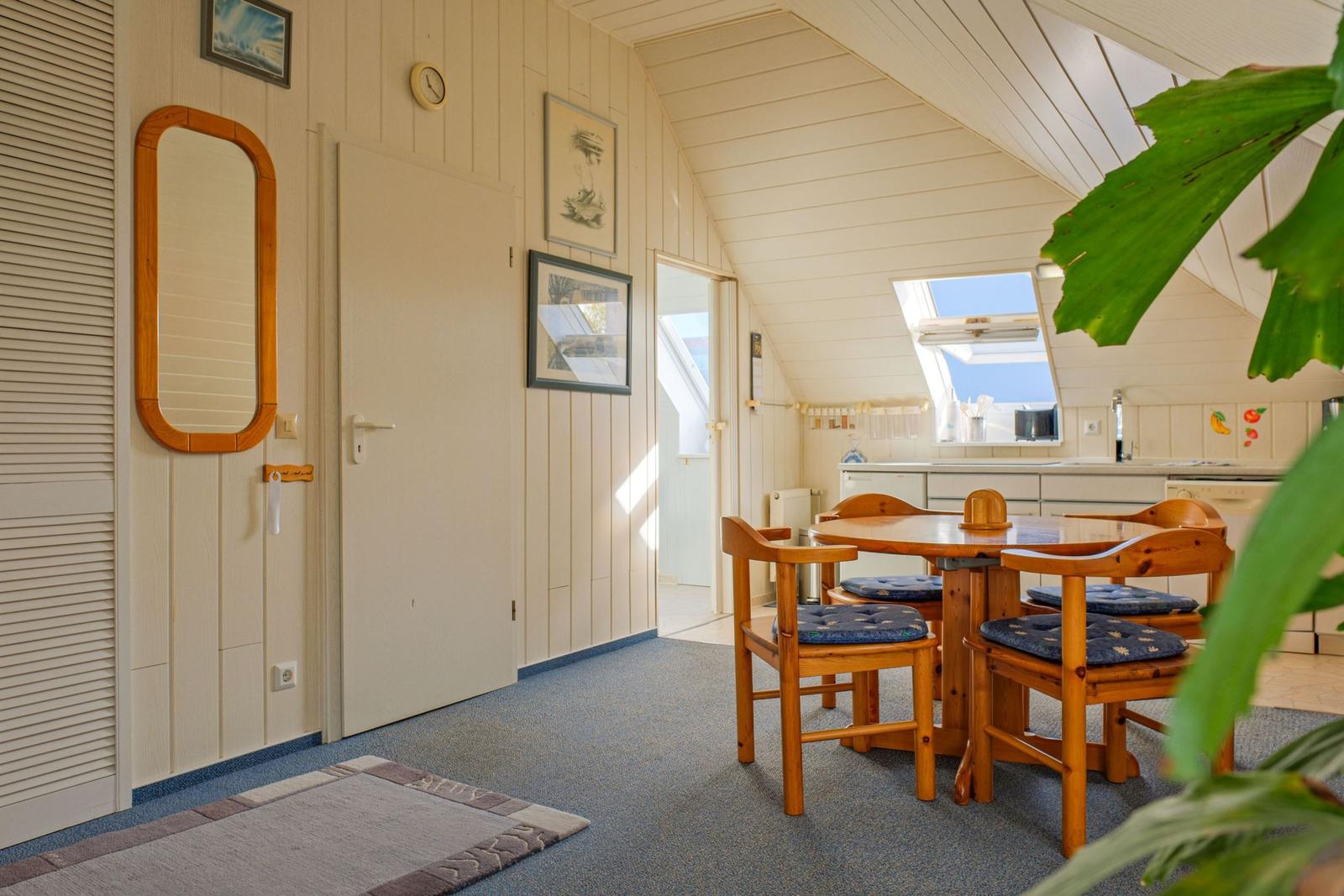 Gemütliche Dachgeschoss-Ferienwohnung in Kühlungsborn-West – ruhig, zentral und strandnah. Nur 600 m bis zum Meer! Die 60 m² große 1-Raum-Wohnung bietet Platz für 2 Personen, verfügt über ein Doppelbett, eine voll ausgestattete Küche, helles Bad mit Dusche, WLAN, TV und einen PKW-Stellplatz. Ideal für Paare, die Erholung und Nähe zum Meer suchen. Haustiere sind nicht erlaubt, Nichtraucherwohnung.