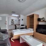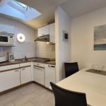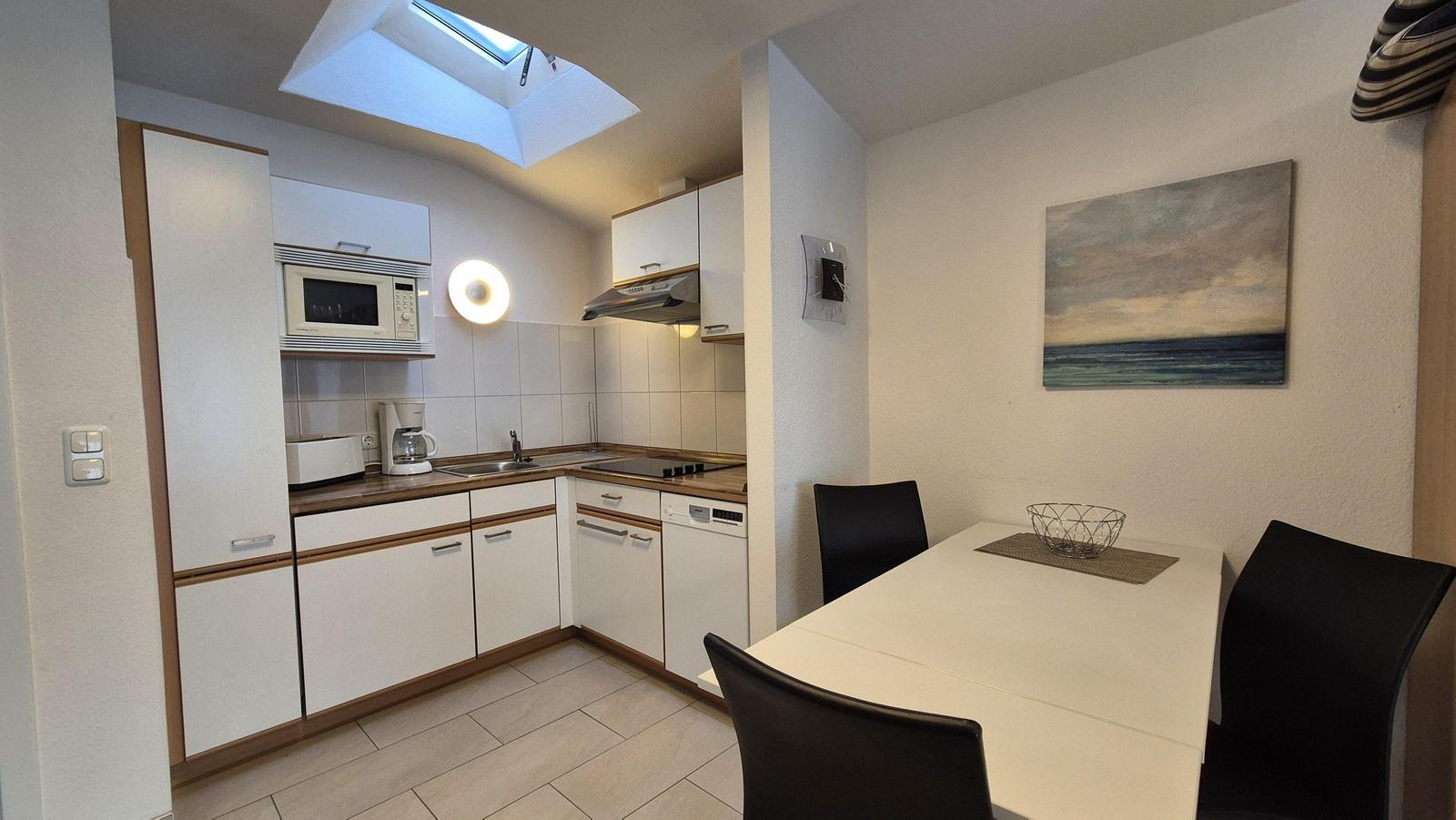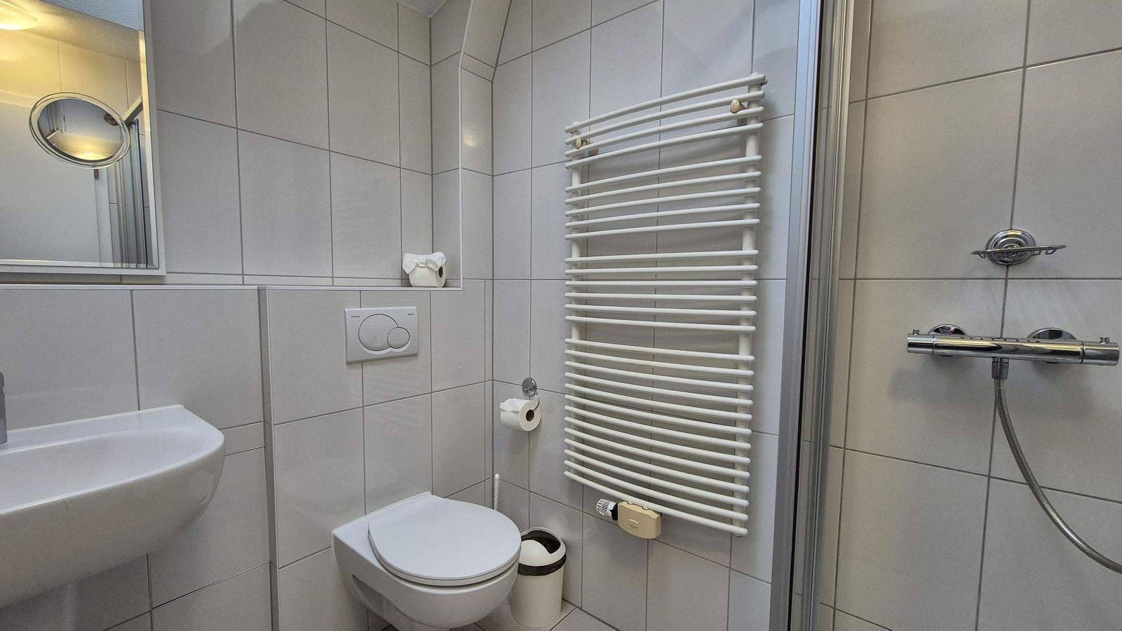 Die 45 m² große Erdgeschosswohnung in einer Bungalowanlage bietet Platz für bis zu 2 Erwachsene und eine weitere Person. Das helle Wohnzimmer ist mit einem gemütlichen Sofa, einem TV und einem praktischen Schrankbett ausgestattet, das als Schlafgelegenheit für die dritte Person dient. Die offene Küchenzeile verfügt über einen Ceranherd, eine Mikrowelle und einen Kühlschrank mit Gefrierfach, ergänzt durch einen Essbereich für gemeinsame Mahlzeiten. Im separaten Schlafzimmer befindet sich ein komfortables Doppelbett sowie ein Kleiderschrank mit ausreichend Stauraum. Das moderne Badezimmer bietet eine Dusche, einen Waschtisch, ein WC und einen Handtuchheizkörper für zusätzlichen Komfort. Die Wohnung eignet sich ideal für entspannte Aufenthalte und lädt dazu ein, die Zeit in einem angenehmen Ambiente zu genießen.