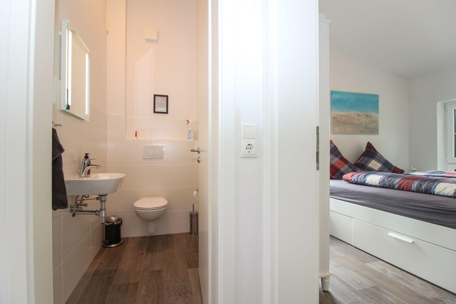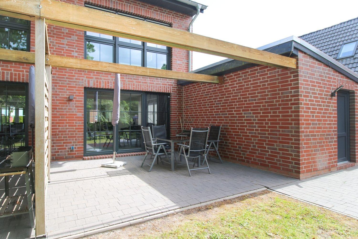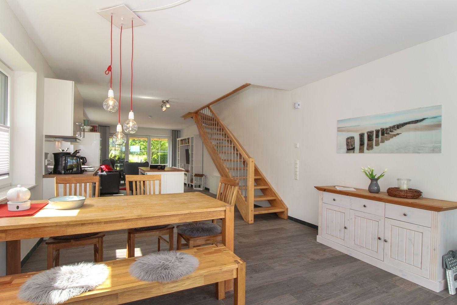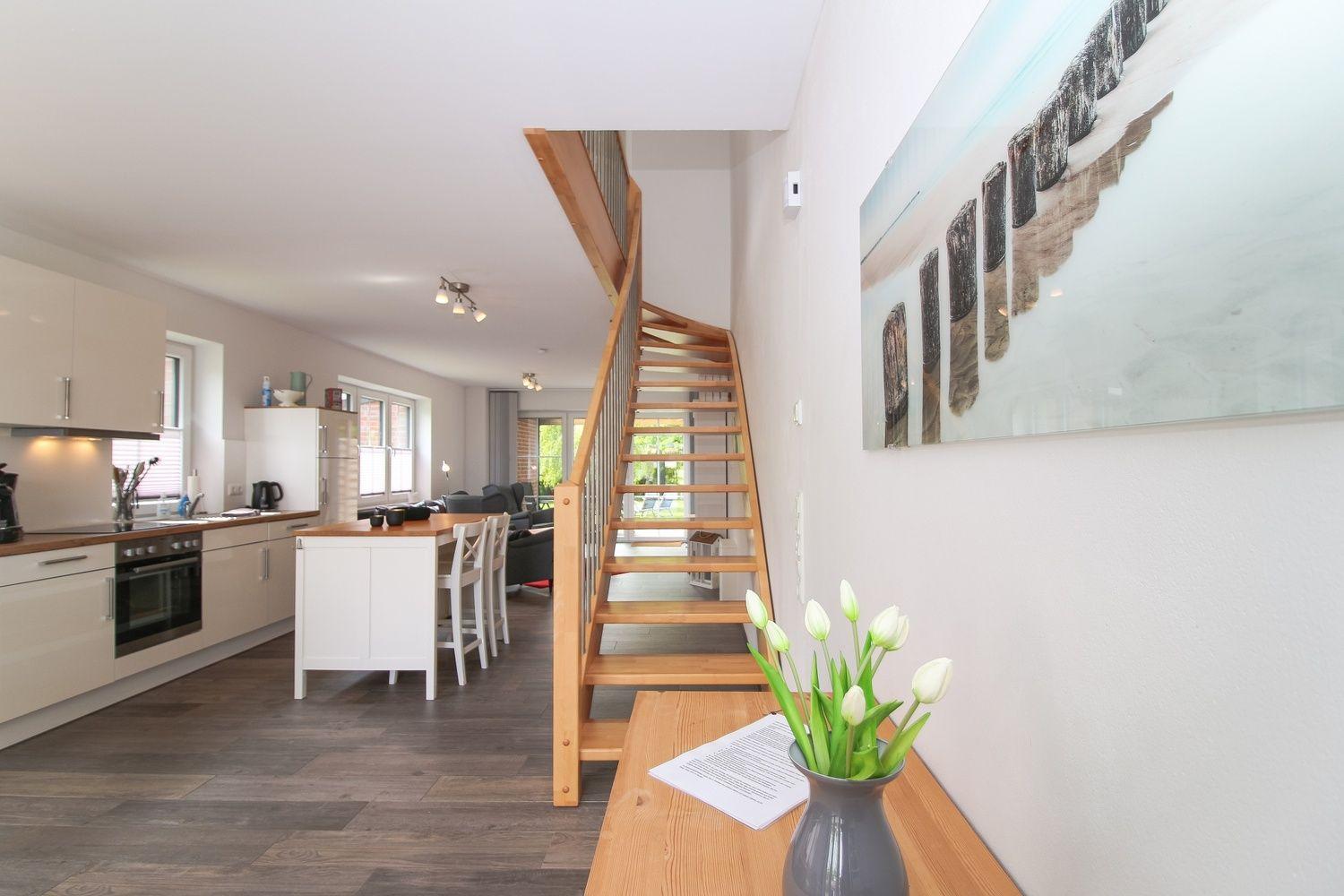 Die Ferienwohnung Zum Eisenlager wurde im Februar 2020 fertiggestellt. Die hochwertig eingerichtete Ferienwohnung lässt keine Wünsche offen. Große Fensterfronten am Eingang und an der Terrassenseite sorgen für ein helles und freundliches Ambiente. Im Parterre haben Sie eine offene Küche mit großem Essbereich. Im Wohnbereich lädt eine moderne Couchgarnitur zu gemütlichen Abenden/Fernsehabenden mit Flachbild TV einladen. Vom Wohnzimmer aus haben Sie einen freien Blick in den großen Garten mit einer Liegewiese. Hier geht es auf die Terrasse, die zum frische Luft schnappen und Sonnenbaden einlädt. Der Blick auf das weite Land ist herrlich entspannend. Die hellen Schlafräume befinden sich im Obergeschoss, ein Schlafzimmer mit Doppelbett (180 x 2 m, großes Laken erforderlich), Kleiderschrank und Flachbild TV und ein Schlafraum mit zwei Einzelbetten. Vom Bett aus haben Sie einen fantastischen Ausblick auf die Felder. Die Fenster lassen sich per elektrischer Jalousien verdunkeln. Der Name der Ferienwohnung hat einen historischen Hintergrund: das neu erbaute Gebäude mit insgesamt drei Ferienwohnungen stammt aus der alten Dorfschmiede Prahst. Zum Gebäude gehört ein 1.000 qm großes Grundstück. Im angrenzender Fahrradschuppen könnten mitgebrachte Fahrräder untergebracht werden. WLAN ist verfügbar! Ihr Hund ist herzlich willkommen!