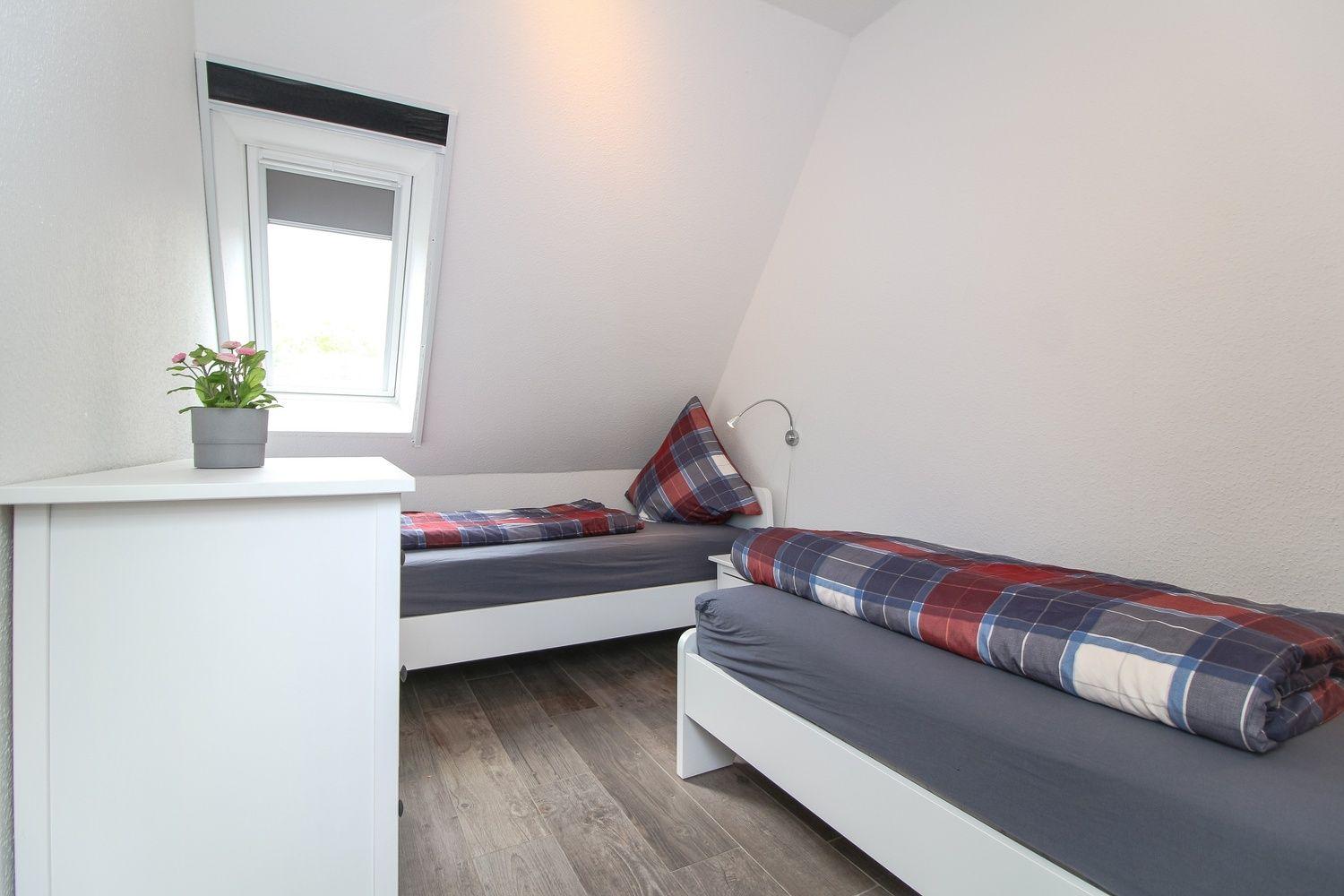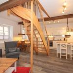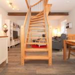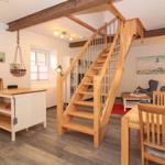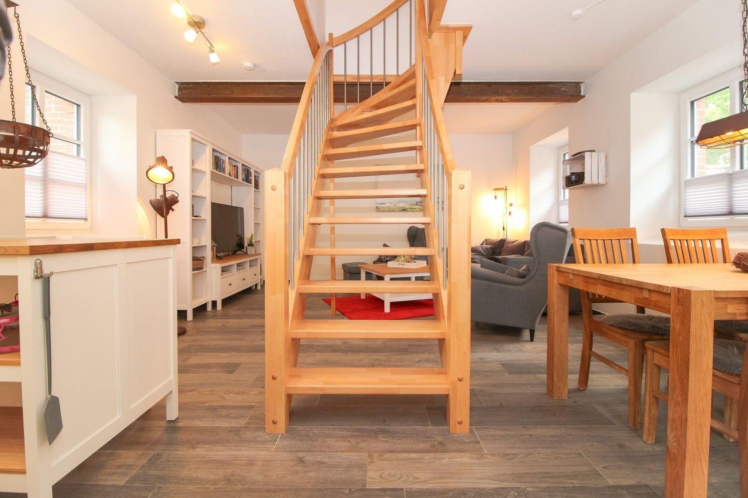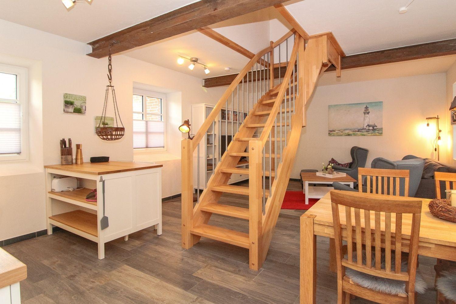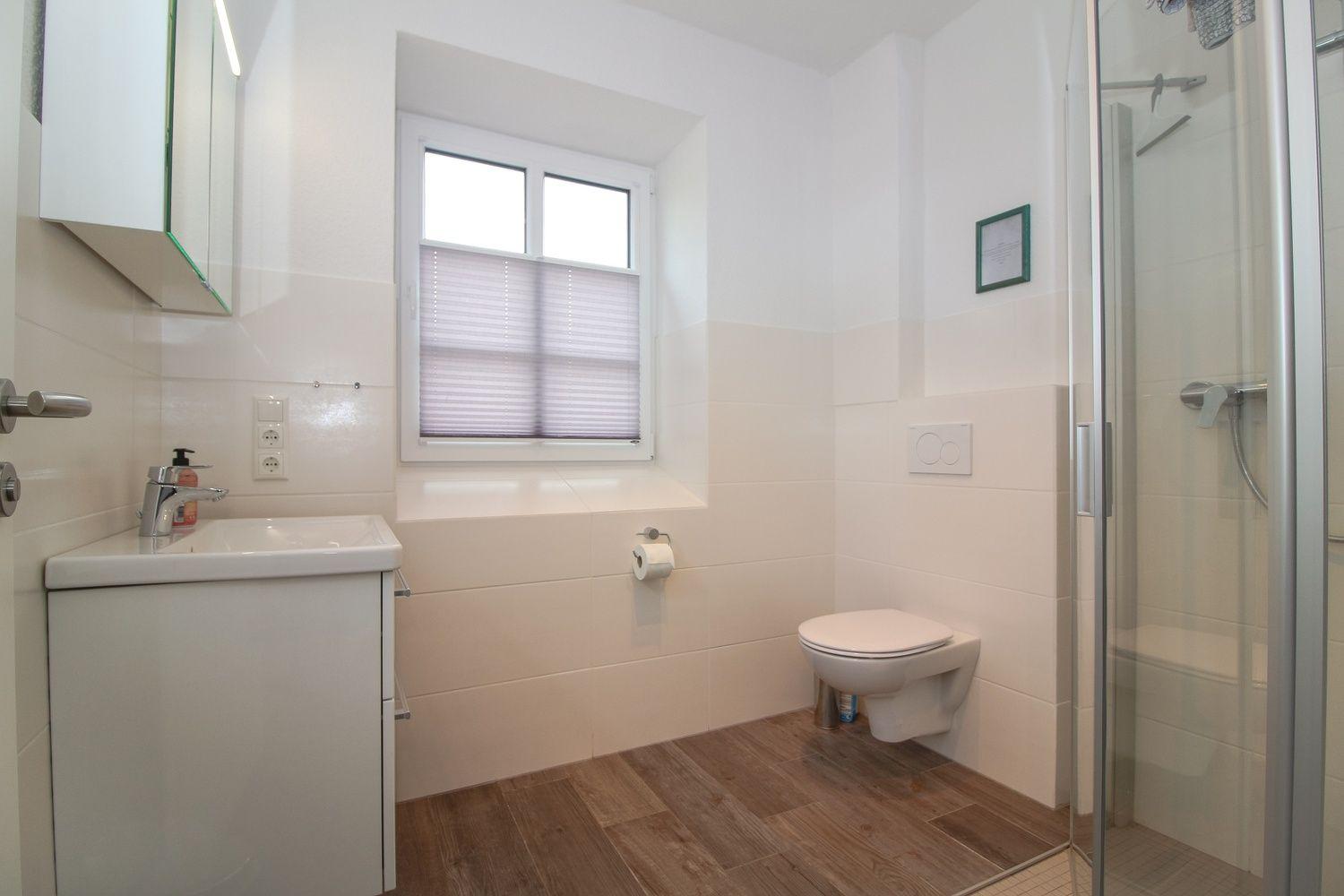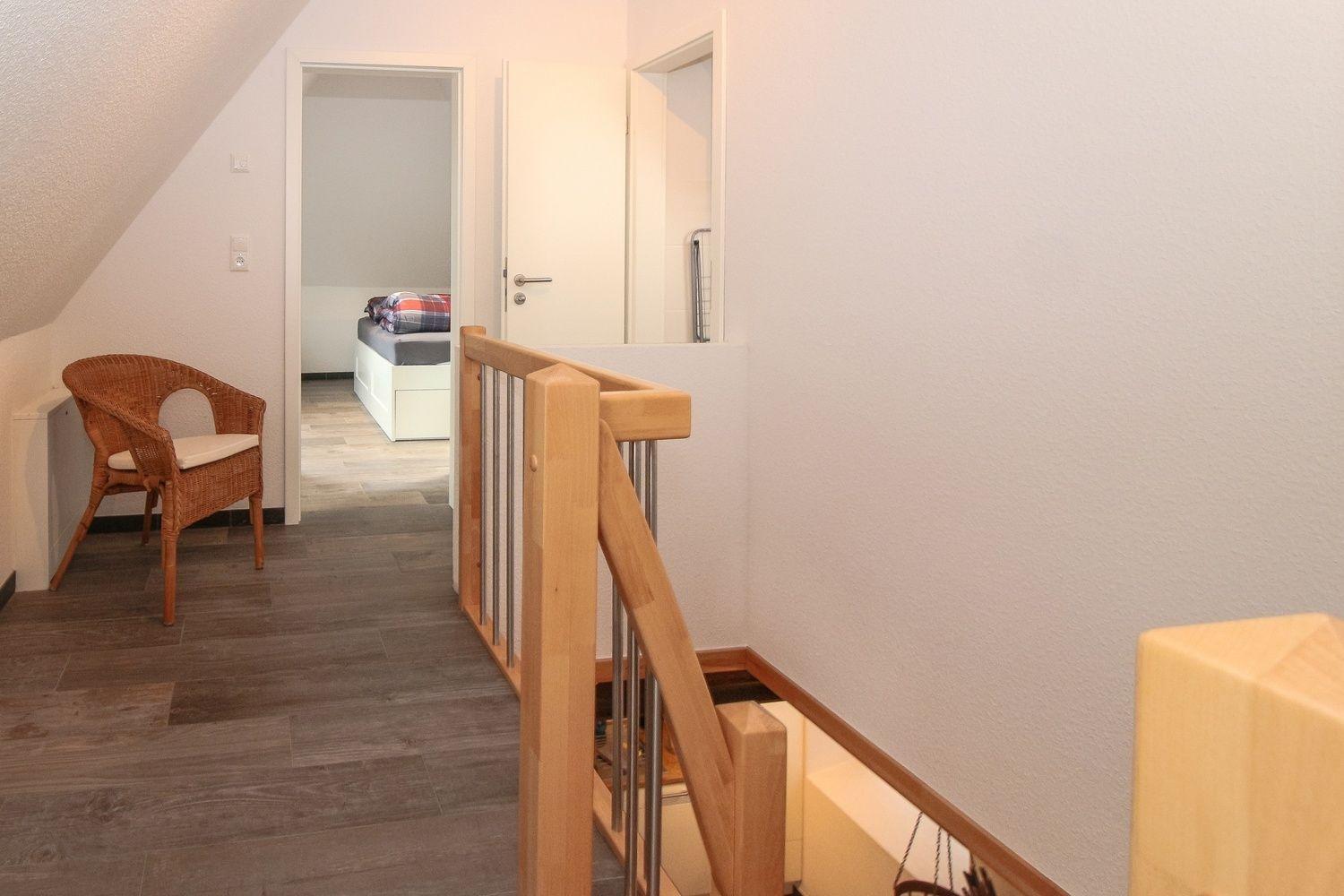 Das Ferienhaus Zur Schmiede wurde komplett neu umgestaltet und renoviert. Es befindet sich angrenzend an einem großen Gebäude mit 3 Wohnungen. Das Haus ist für bis zu 4 Personen ausgestattet. Beim Eintreten werden Sie sich gleich wohlfühlen. Moderne Fliesen mit Fußbodenheizung lassen Gemütlichkeit herein. Im Erdgeschoss ist eine voll eingerichtete Küchenzeile mit Esstisch im amerikanischen Stil. Der Essbereich lädt zu geselligen Abenden ein. Der Wohnbereich hat eine gemütliche Couchecke und einen Ruhe-/Fernsehsessel. Der große Flachbildfernseher ist für Netflix eingerichtet. Das helle Badezimmer mit Dusche und WC befindet sich ebenfalls im Erdgeschoß. Eine schöne möblierte Terrasse lädt zum Relaxen und Entspannen ein. Im Obergeschoß befinden sich 2 Schlafzimmer. Das eine Zimmer ist mit einem Doppelbett ausgestattet (Matratze: 1,80 x 2,00 m, großes Laken erforderlich). Im zweiten Schlafzimmer stehen 2 Einzelbetten. Alles ist sehr hell und geschmackvoll eingerichtet. Beide Schlafräume verfügen über Fliegengitter und Außenrollos. Oben haben Sie noch ein separates WC. WLAN ist verfügbar! Ein großer Fahrradschuppen bietet Platz für mitgebrachte Räder.