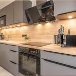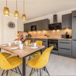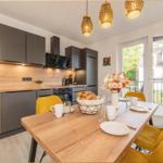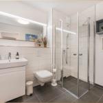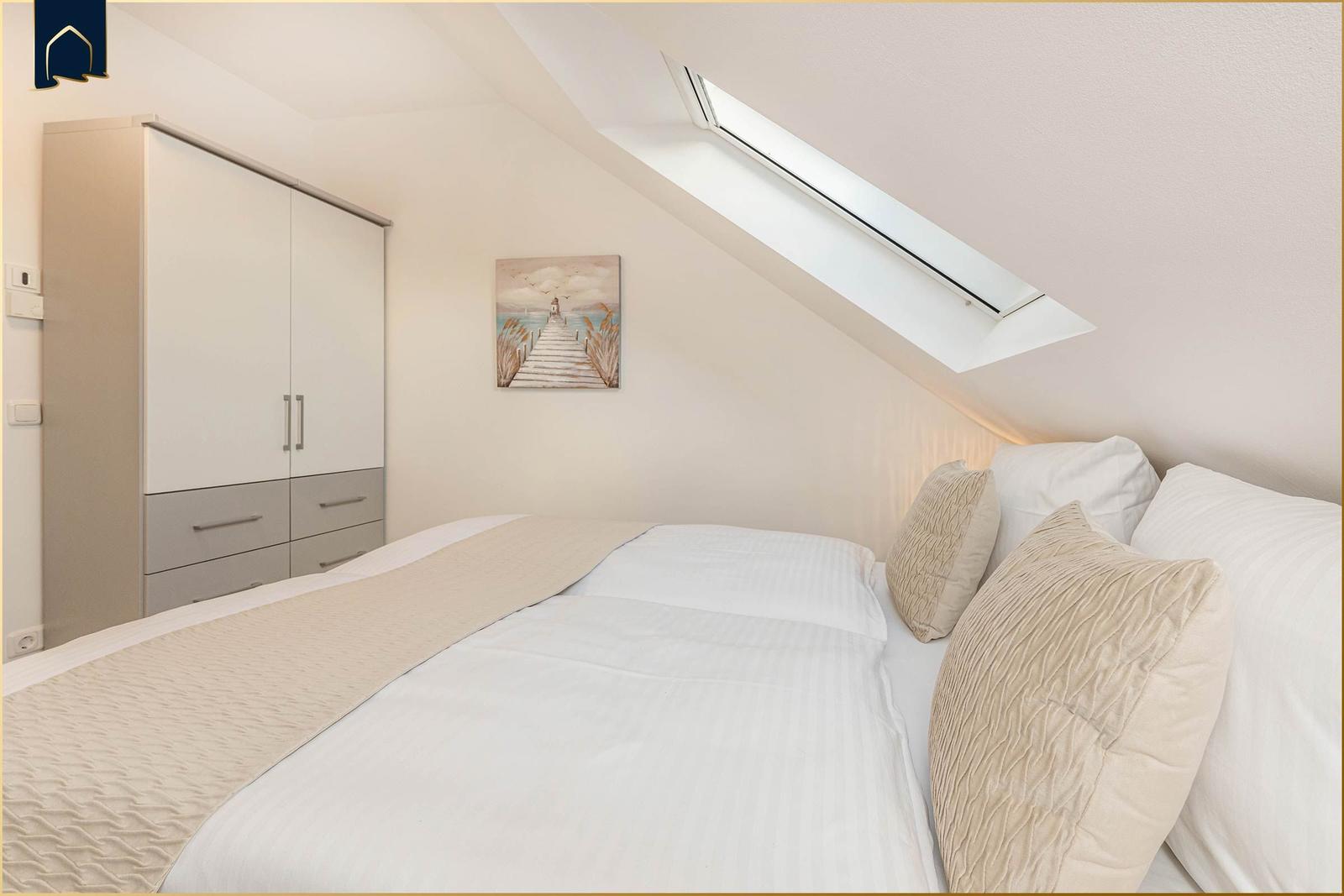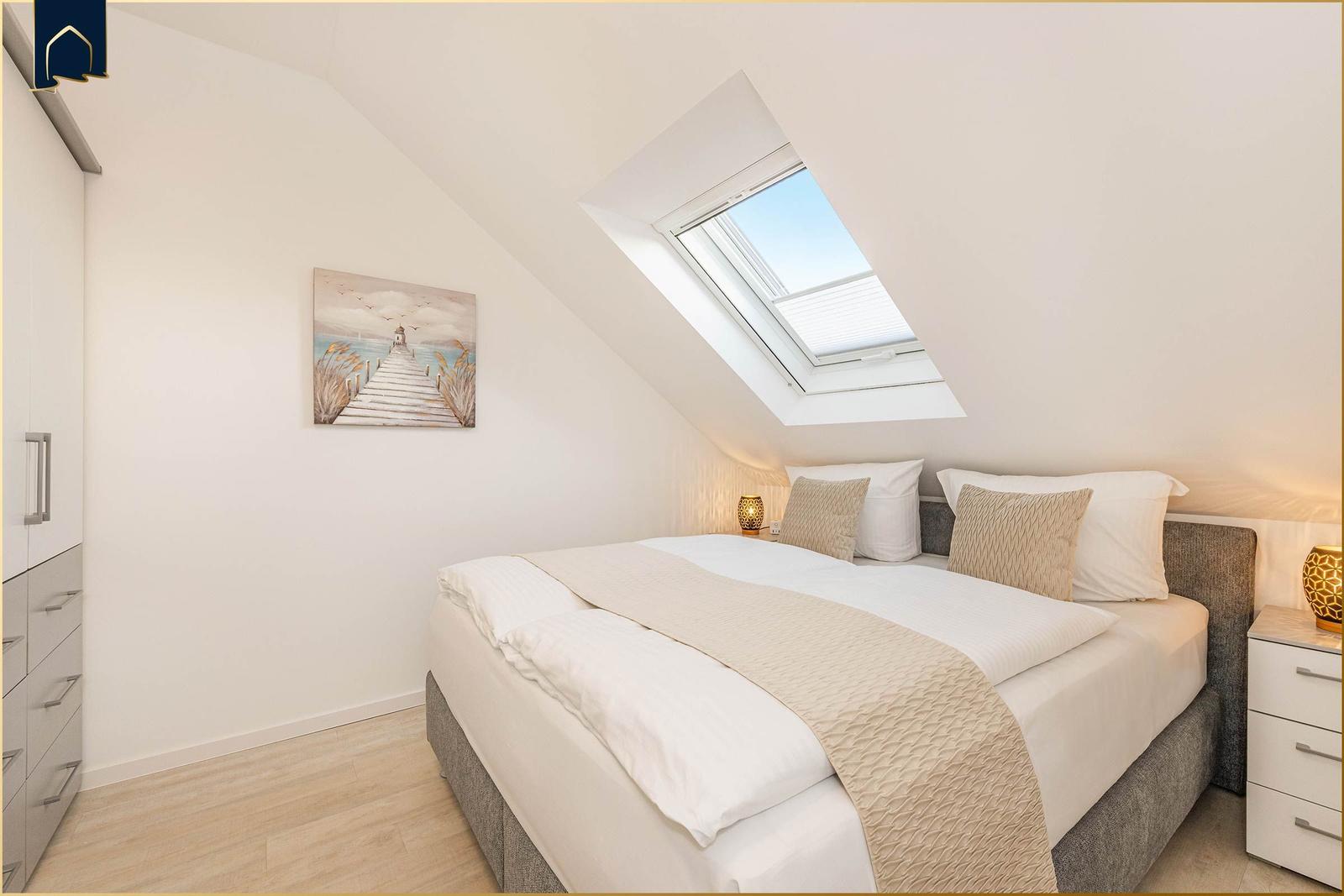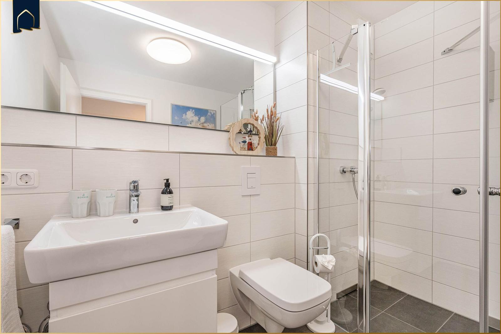Die moderne Ferienwohnung Fewo Kleckerburg in Kölpinsee auf Usedom bietet auf 67 m² stilvollen Komfort für bis zu vier Gäste. Im dritten Stock, bequem per Aufzug erreichbar, befinden sich zwei separate Schlafzimmer, ein heller Wohnbereich sowie ein stilvolles Badezimmer mit bodengleicher Dusche. Die offene, voll ausgestattete Küche umfasst einen Ceranherd, Backofen, Mikrowelle, Spülmaschine und Kühlschrank mit Gefrierfach. Zwei große Flachbild-TVs und WLAN stehen für Unterhaltung zur Verfügung.