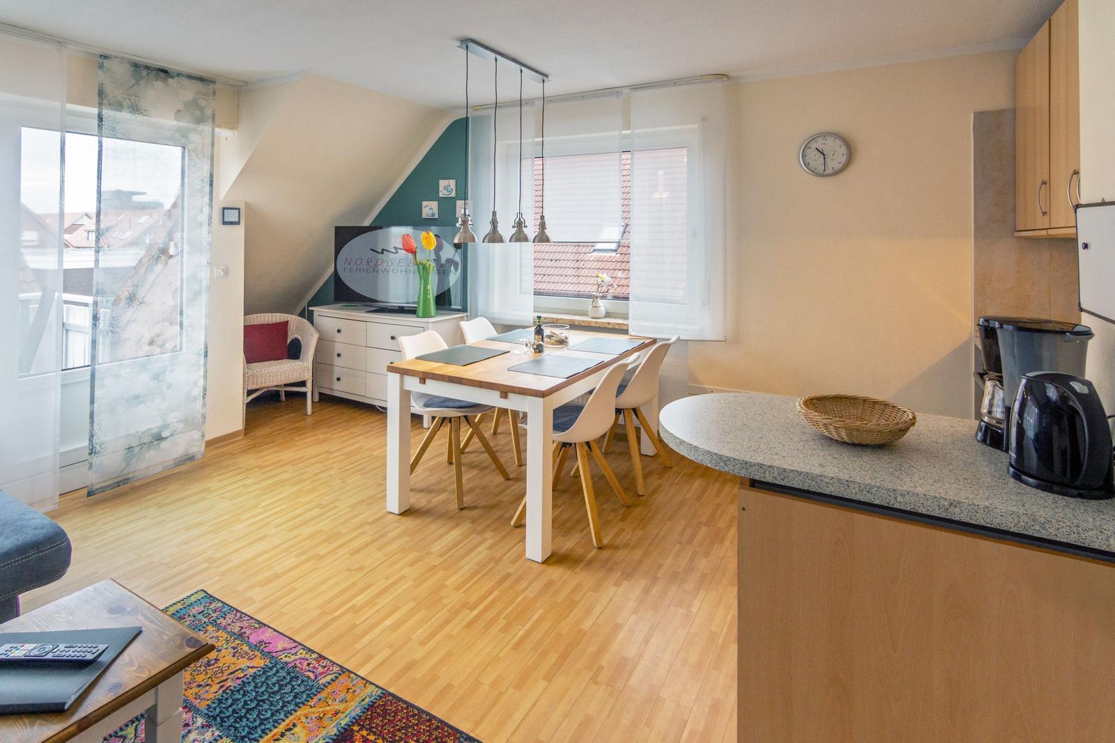 Der Außenbereich dieser strandnahen Ferienwohnung in Norddeich bietet einen geräumigen Balkon, auf dem die Gäste bei sonnigem Wetter entspannen können. Ein gemütlicher Strandkorb steht bereit, um herrliche Stunden im Freien zu genießen. Die Ferienwohnung ist Teil eines ruhigen Hauses in einer Seitenstraße, das nicht nur durch seine Nähe zum Strand besticht, sondern auch durch den einfachen Zugang zu zahlreichen Freizeitangeboten wie dem Kurzentrum, dem Erlebnisschwimmbad „Ocean Wave“ und weiteren Attraktionen, die alle in etwa 450 m Fußweg erreichbar sind. Der Außenbereich ist gemeinschaftlich nutzbar, wodurch die Gäste die Möglichkeit erhalten, die Umgebung in angenehmer Gesellschaft zu erleben. Haustiere sind erlaubt, während Bettwäsche und Handtücher kostenpflichtig hinzugebucht werden können. Die Schlüsselabholung erfolgt in der Norddeicher Str. 55 in Norden.