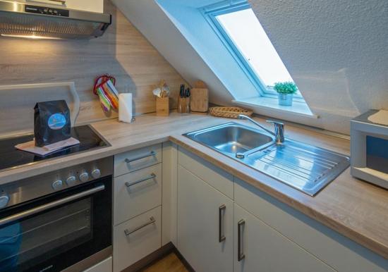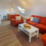 Im Wohnbereich findest du ein bequemes Sofa mit Schlaffunktion und einen dazugehörigen Sessel, die zum Verweilen einladen. Für Unterhaltung ist gesorgt: Die Wohnung verfügt über Internet und WLAN, einen TV, ein Radio, einen DVD-Spieler sowie eine Auswahl an Büchern und Spielen. Die Küche ist offen zum Wohnzimmer gestaltet und mit modernen Geräten ausgestattet, darunter ein Ceran-Herd, ein Gefrierfach/-schrank, eine Espressomaschine, eine Mikrowelle, ein Kühlschrank, eine Kaffeemaschine, ein Wasserkocher, ein Mixer, ein Toaster und ein Eierkocher. Geschirr und Besteck, Geschirrhandtücher, Gewürze und ein Abfalleimer sind ebenfalls vorhanden.