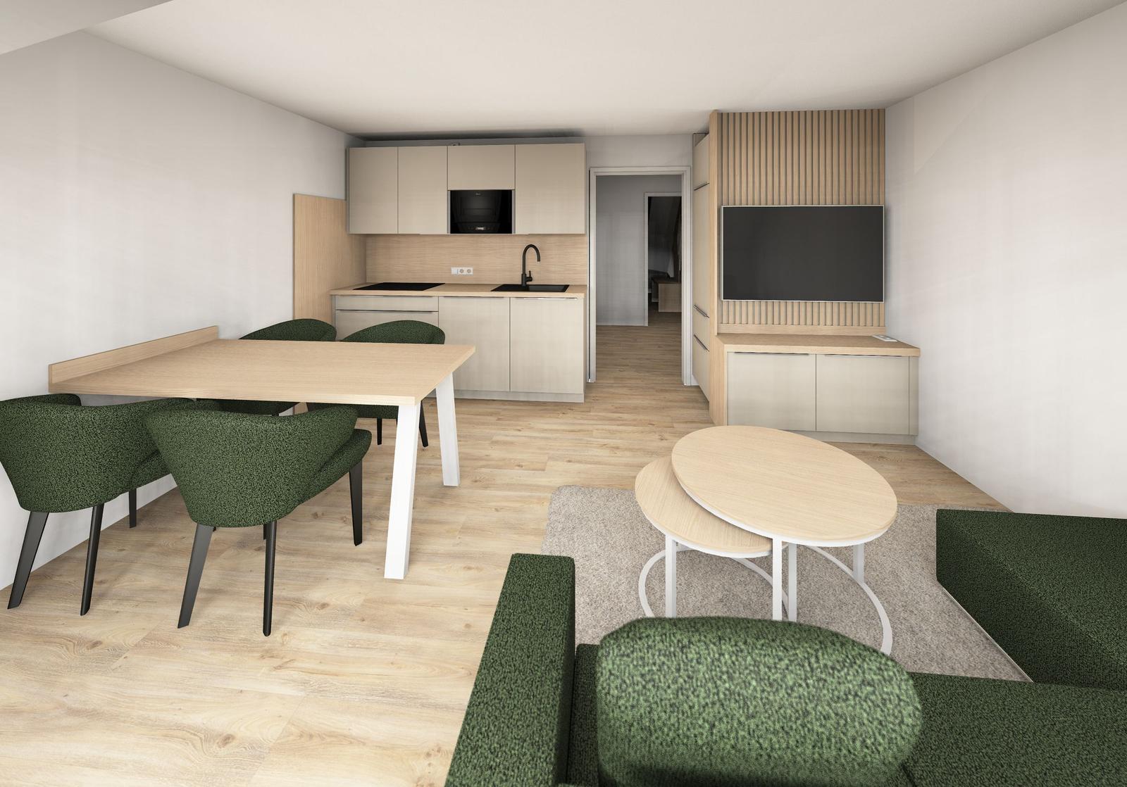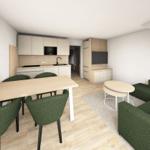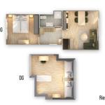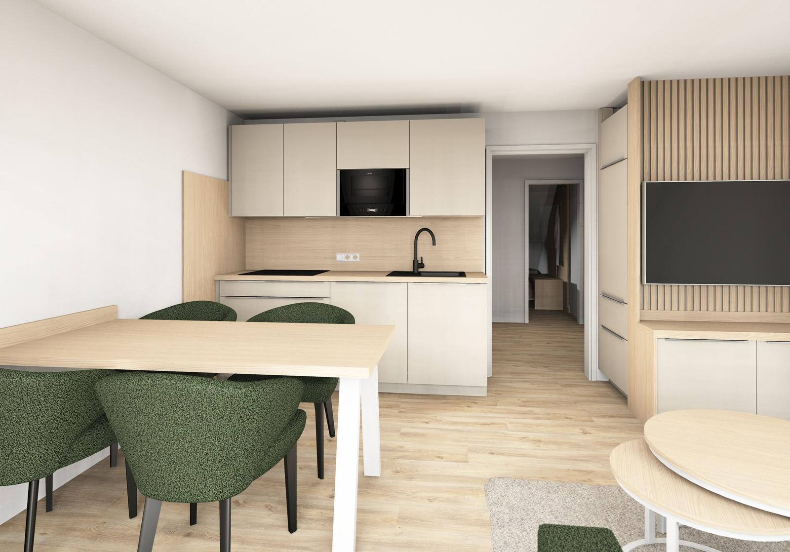 Die Ferienwohnung überzeugt mit einer modernen und allergikergeeigneten Ausstattung, die auf komfortablen Aufenthalt ausgerichtet ist. Sie bietet ein Schlafzimmer mit einem Doppelbett sowie ein Wohnschlafzimmer mit zwei Einzelbetten und einem gemütlichen Sofa. Die offene Küche ist vollständig ausgestattet und beinhaltet einen Elektro-/Gasherd, Backofen, Mikrowelle, Kühlschrank mit Gefriermöglichkeit, Kaffeemaschine, Toaster und Wasserkocher. Der Esstisch lädt zu geselligen Mahlzeiten ein. Das Badezimmer verfügt über eine Dusche, einen Haartrockner und ist mit Geschirrtüchern sowie Badetüchern ausgestattet. Für Unterhaltung sorgt der TV, während WLAN-Internet für die perfekte Anbindung sorgt. Ein Parkplatz vor der Tür und nützliche Extras wie ein Staubsauger und Rauchmelder runden das Angebot ab. Die Ferienwohnung ist ideal für entspannte Tage in einer einladenden Umgebung.