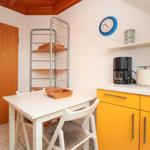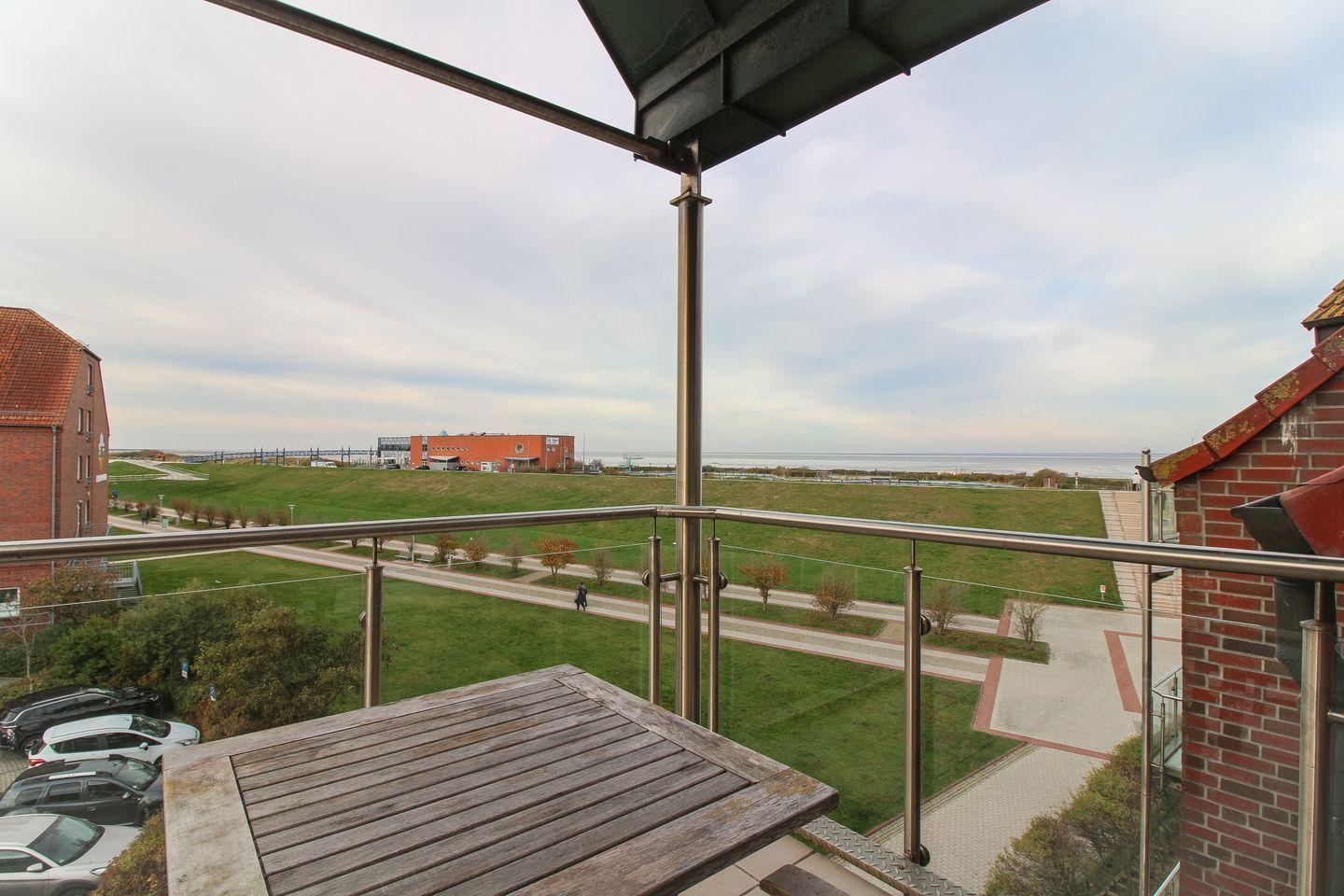 Die Residenz am Deich, Wohnung 29, präsentiert sich als komfortable Ferienunterkunft mit modernem Ambiente auf großzügigen 75 m². Im dritten Stock gelegen, bietet die lichtdurchflutete Wohnung einen eigenen Balkon mit Blick auf das Meer. Sie umfasst ein separates Schlafzimmer, das Schlafmöglichkeiten für bis zu drei Personen bietet, darunter ein spezieller Platz für Kinder. Der einladende Wohnbereich mit Sofaecke und TV lädt zum Entspannen ein, während ein Esstisch für gesellige Mahlzeiten sorgt. Die offene Küche ist vollständig ausgestattet mit einem Ceran-Herd, einer Spülmaschine und einem Kühlschrank mit Gefrierfach, ergänzt durch nützliche Kleingeräte wie Toaster und Kaffeemaschine. Das helle Bad ist mit einer praktischen Eckdusche und einem Fenster ausgestattet. WLAN ist verfügbar, und die Wohnung ist eine Nichtraucherunterkunft. Bitte beachten, dass kein Fahrstuhl vorhanden ist, um zur Unterkunft zu gelangen.
