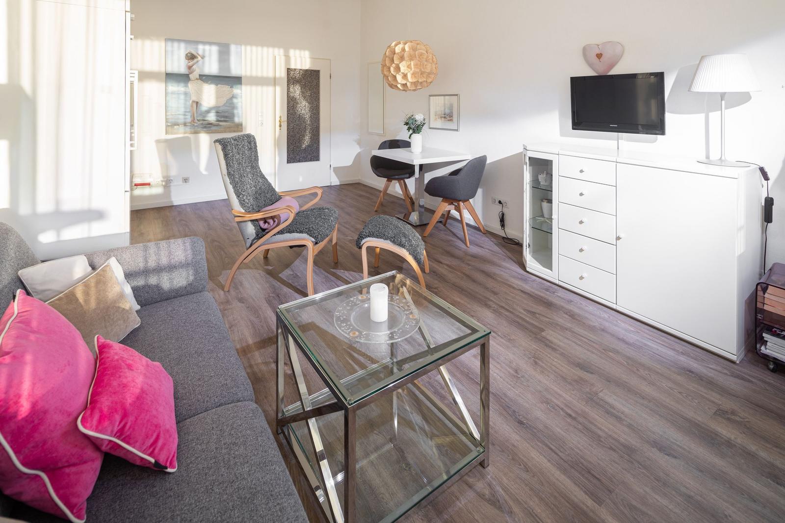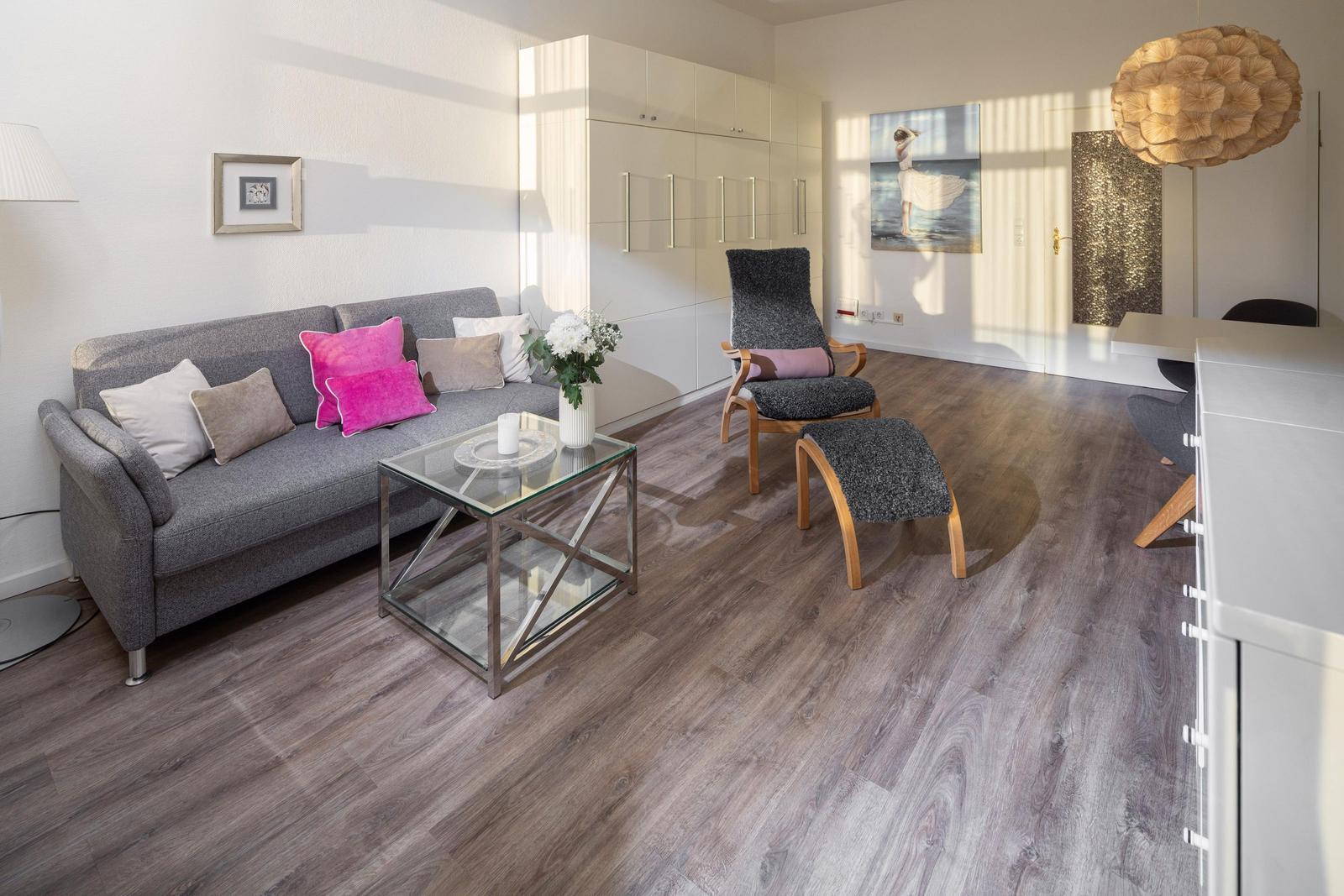 Die Ferienwohnung befindet sich in einer zentralen Lage auf Norderney, umgeben von charmanten Cafés, Restaurants und kleinen Geschäften. Nur etwa 1 Kilometer entfernt liegt der bekannte Strand, ideal für entspannende Tage am Meer oder vielfältige Wassersportaktivitäten. Der Weg zur nächsten Fahrradverleihstation beträgt nur 500 Meter, was Ausflüge zu den malerischen Dünenlandschaften der Insel erleichtert. Für Naturbegeisterte bietet der nahegelegene Dünenschutzpark zahlreiche Wander- und Radwege, die in weniger als 2 Kilometern erreicht werden können. Die Anreise zur Wohnung gestaltet sich unkompliziert, da die Fähre von Festland in nur 30 Minuten zur Insel führt. Auch der Ortskern mit Marktplatz und weiteren Geschäften ist in weniger als 1 Kilometer problemlos zu erreichen, was die Lage der Ferienwohnung besonders attraktiv macht.