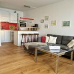 Die helle, geräumige 2-Raum-Ferienwohnung erstreckt sich über 65 m² und bietet eine ideale Unterkunft für einen erholsamen Aufenthalt. Sie umfasst ein separates Schlafzimmer mit einem komfortablen Doppelbett und einen großzügigen Wohnraum, der mit einem TV sowie einem Essbereich ausgestattet ist. Die offene Küche verfügt über moderne Geräte, darunter ein Cerankochfeld, Backofen, Mikrowelle und eine Spülmaschine, ergänzt durch eine integrierte Bar. Das Badezimmer ist mit einer Dusche und WC ausgestattet. Die Ferienwohnung ist Nichtraucherunterkunft und bietet Zugang zu zwei Balkonen mit herrlichem Meer- und Stadtblick. Die Gäste haben zudem die Möglichkeit, das Schwimmbad zu nutzen und eine Münzsauna im Haus steht ebenfalls zur Verfügung. Der Eingang erfolgt über den Damenpfad.