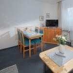 Die Ferienwohnung bietet eine helle und einladende Atmosphäre mit einem durchdachten Raumkonzept. Im Schlafzimmer befindet sich ein komfortables Doppelbett, während das Wohnschlafzimmer zusätzlich mit einem Einzelbett ausgestattet ist, ideal für Familien oder kleine Gruppen. Die offene Küche ist modern eingerichtet und verfügt über einen Elektro-/Gasherd, Kühlschrank, Kaffeemaschine, Toaster sowie eine Gefriermöglichkeit. Für die Kleinsten steht ein Kinderhochstuhl bereit.