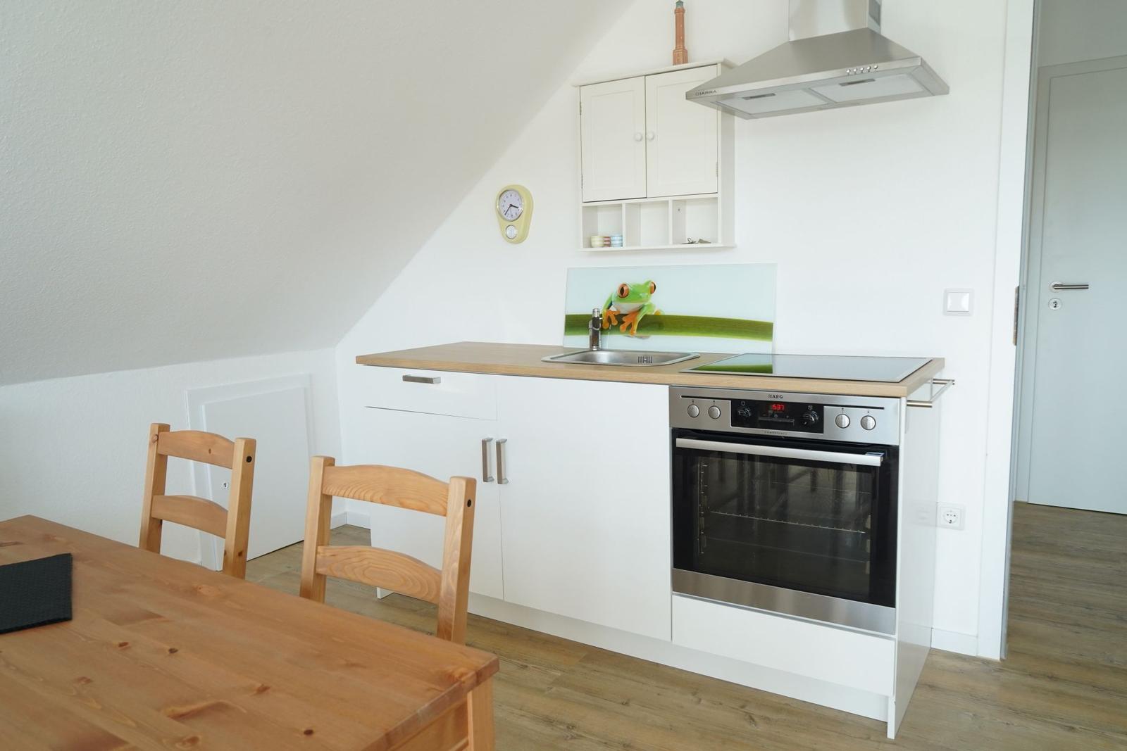 Die Ferienwohnung bietet eine komfortable und allergikergeeignete Unterkunft, ideal für Familien und Paare. Sie verfügt über ein Schlafzimmer mit einem Doppelbett sowie ein Wohnschlafzimmer, das mit einer Schlafcouch und einem Kinderbett ausgestattet ist. Die offene Küche ist modern und komplett mit einem Elektro-/Gasherd, Backofen, Mikrowelle, Kühlschrank, Gefriermöglichkeit, Kaffeemaschine, Toaster und Wasserkocher ausgestattet. Im Essbereich lädt ein großzügiger Esstisch zum Verweilen ein. Das Badezimmer begeistert durch eine bodengleiche Dusche, die viel Tageslicht bietet. Für Unterhaltung stehen ein TV und eine HiFi-Anlage zur Verfügung. Die Wohnung ist mit einem Sofa, Sessel und Stauraum in Form von Schränken und Kommoden ausgestattet. WLAN sorgt für ständige Online-Verbindung. Zudem sind Brettspiele für Familienabende vorhanden. Ein Rauchmelder, Haartrockner und Ventilator runden das Angebot ab. Ein entspannender Aufenthalt ist garantiert.