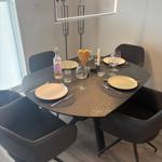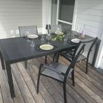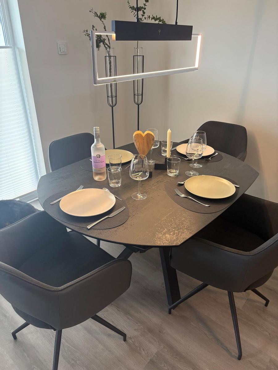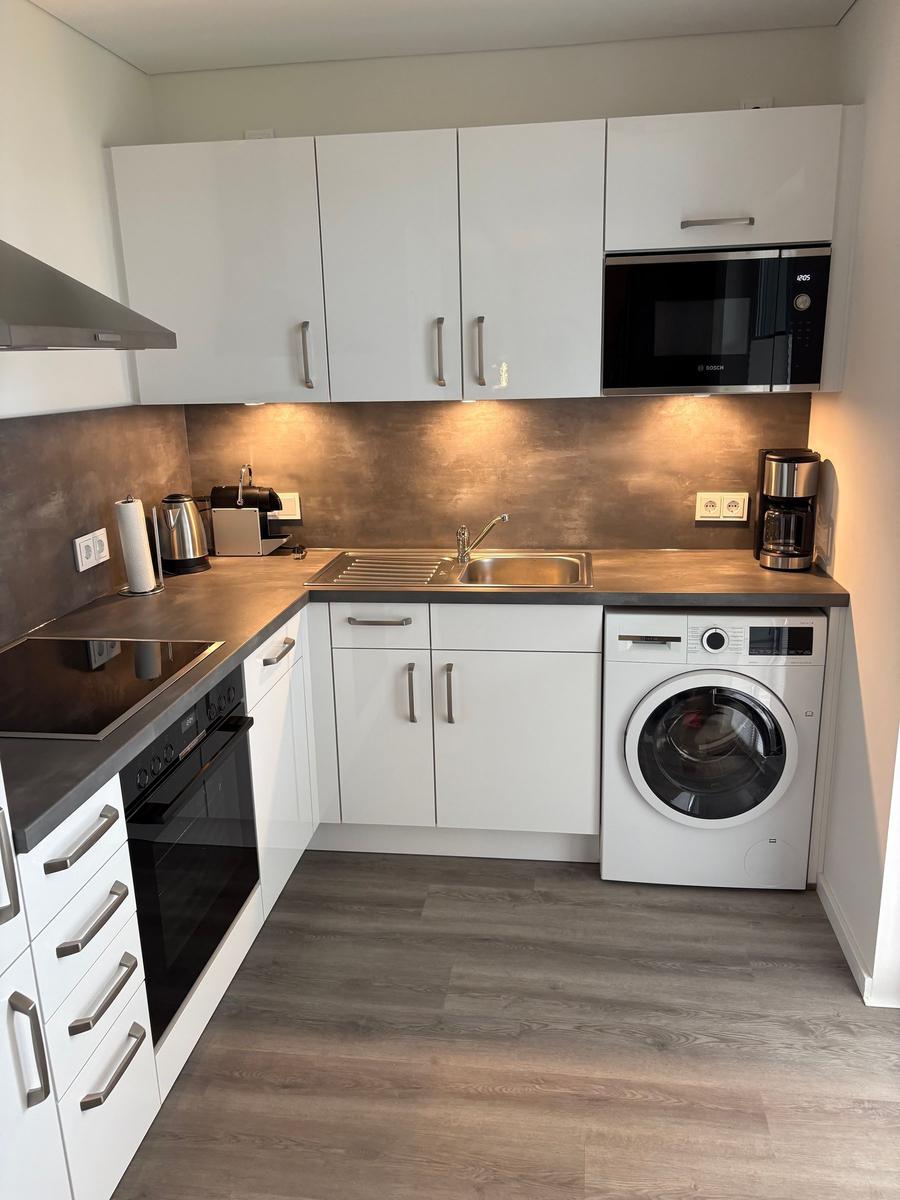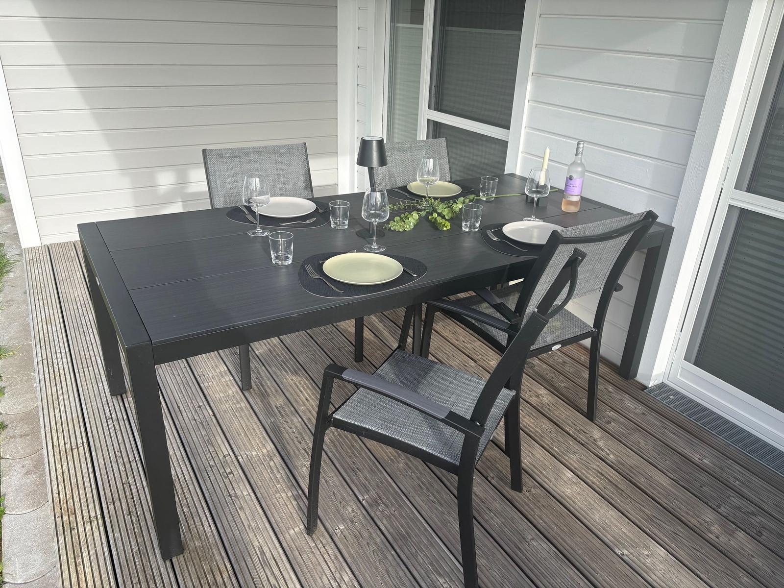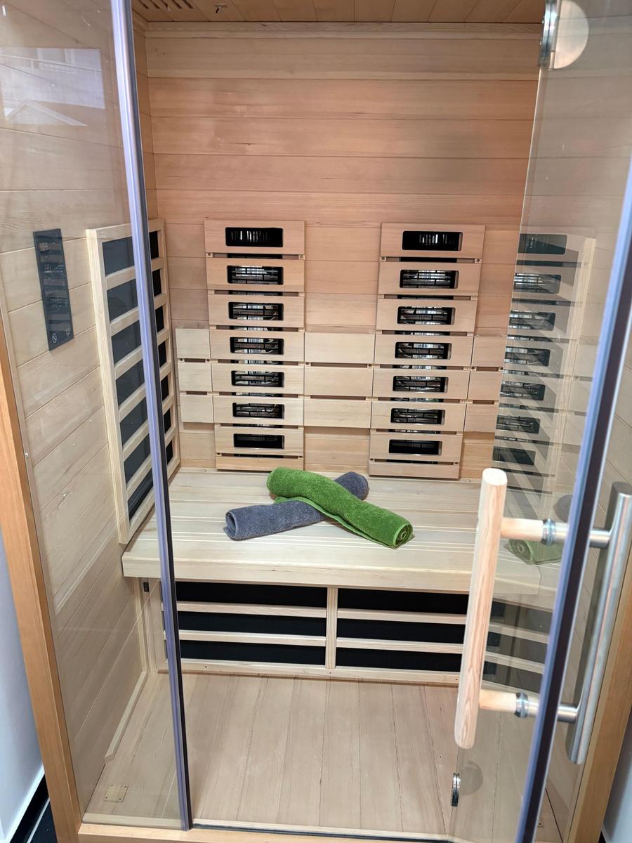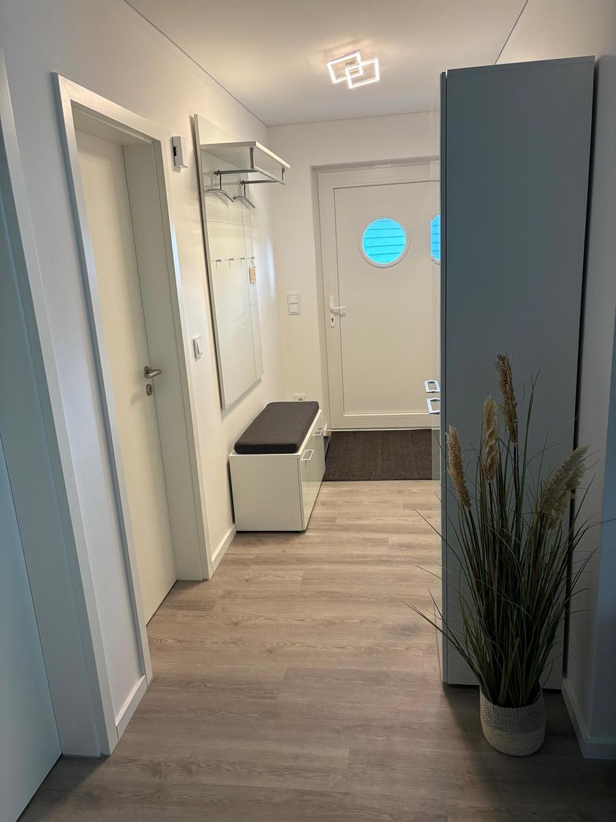 Hier finden sowohl Familien als auch Paare optimale Bedingungen für einen erholsamen Urlaub in moderner Atmosphäre. Die Ferienwohnung verfügt über zwei separate Schlafzimmer, die einen erholsamen Schlaf garantieren. Ein Schlafzimmer ist mit einem Doppel-Boxspringbett (180x200cm) ausgestattet. Das andere Schlafzimmer verfügt über ein Schrankbett (160x200cm), das zu einem Schreibtisch umbaubar ist. So bietet der Raum tagsüber genügend Platz zum Spielen. Beide Schlafzimmer verfügen über einen Smart-TV sowie einen Kleiderschrank und Verdunkelungsmöglichkeiten. Der offene Wohn- und Essbereich mit hochwertiger Ausstattung lädt zum Verweilen ein. Ein Kaminofen sorgt an kühleren Tagen für behagliche Wärme und eine gemütliche Stimmung. Im Wohnbereich stehen Ihnen unter anderem ein bequemes Sofa sowie ein TV zur Verfügung. Alle Fenster sind mit Sichtschutz und Fliegengittern ausgestattet. Die offen gestaltete Küche ist nahtlos in den Wohnbereich integriert und mit einem modernen Induktionsherd, einem großen Kühlschrank, einem leisen Geschirrspüler, einer Espresso- und Kaffeemaschine, einer Mikrowelle sowie weiteren Küchenutensilien ausgestattet. Ein Esstisch bietet ausreichend Platz für gemeinsame Mahlzeiten. Für Komfort im Alltag sorgen zudem ein Waschtrockner, Bügeleisen, Bügelbrett, Wäscheständer und Staubsauger. Das Badezimmer überzeugt mit einer bodengleichen Dusche, einer Infrarotkabine, Kosmetikspiegel sowie einem Haartrockner und weiteren Annehmlichkeiten. Die Infrarotkabine stehen exklusiv zu Ihrer Nutzung bereit und ermöglichen Ihnen wohltuende Wellnessmomente nach einem Tag am Meer. Genießen Sie die frische Ostseeluft auf der eigenen Terrasse, ausgestattet mit Gartenmöbeln und einem großen Elektro-Grill. Eine Rasenfläche grenzt direkt an die Wohnung und bietet zusätzlichen Platz zum Entspannen. Haustiere dürfen ebenfalls mitgebracht werden, sodass die ganze Familie mitkommen kann. Ein privater, kostenloser Parkplatz direkt vor dem Haus steht Ihnen zur Verfügung, zusätzlich besteht die Möglichkeit, ein Elektroauto an der hauseigenen Ladestation aufzuladen.