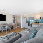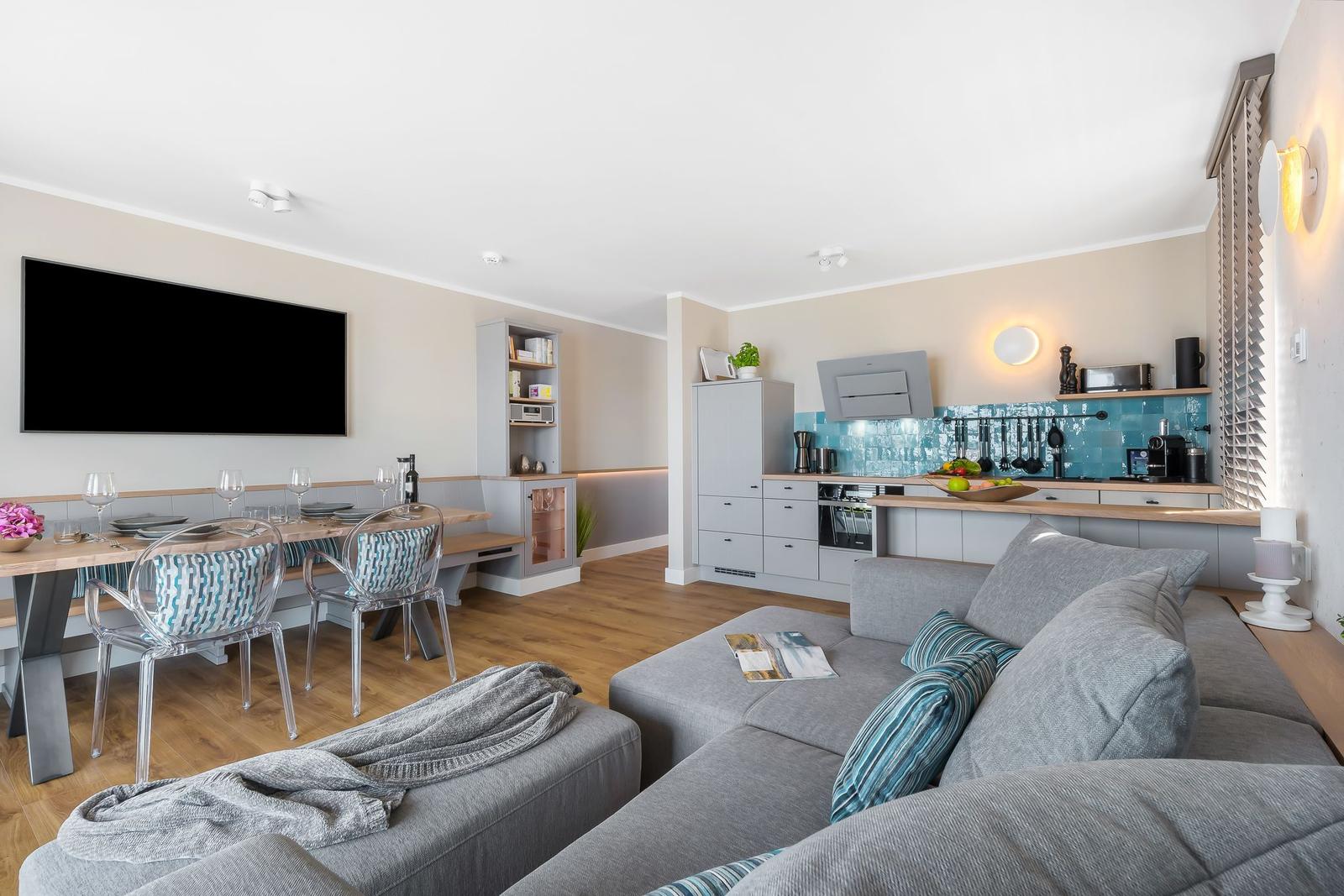 Die Ferienwohnung LangeBank, App. 1, bietet auf 55 m² Platz für bis zu 2 Personen. Die geschmackvoll im skandinavischen Landhausstil eingerichtete Wohnung umfasst ein lichtdurchflutetes Schlafzimmer mit einem gemütlichen Doppelbett (180 x 200 cm), einem 43 Zoll großen TV und einem komfortablen Schreibtisch. Das moderne Duschbad ist mit einer bodengleichen Dusche und einer Waschmaschine ausgestattet. Die großzügige, offene Küche lässt keine Wünsche offen und ist ideal für die Zubereitung köstlicher Urlaubsmahlzeiten. Ein Highlight ist der private Balkon mit traumhaftem Meerblick. Zusätzlichen Unterhaltung bietet der 65 Zoll große Flatscreen-TV im Wohnzimmer. Ein kostenfreier PKW-Stellplatz ist ebenfalls vorhanden. Haustiere sind willkommen. Besonders zu erwähnen ist die gemeinschaftlich nutzbare Müllentsorgungsstelle, die in der Nähe des Funkturms zu finden ist.