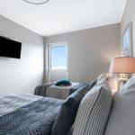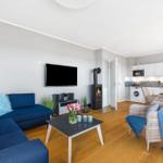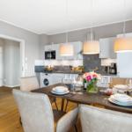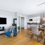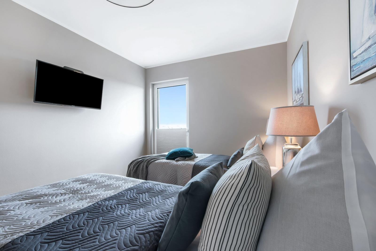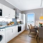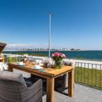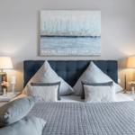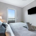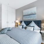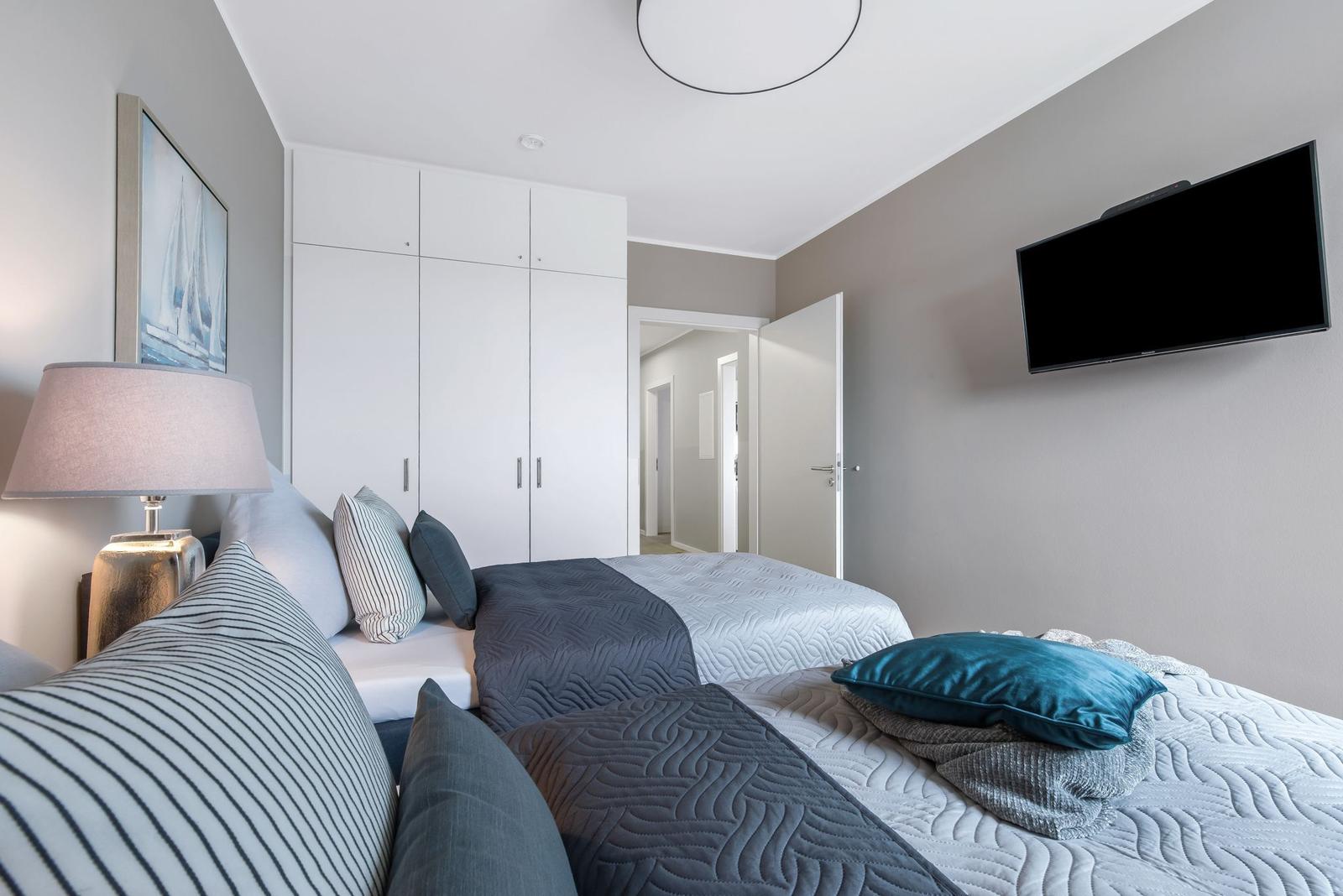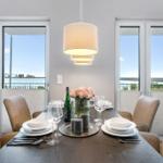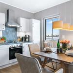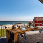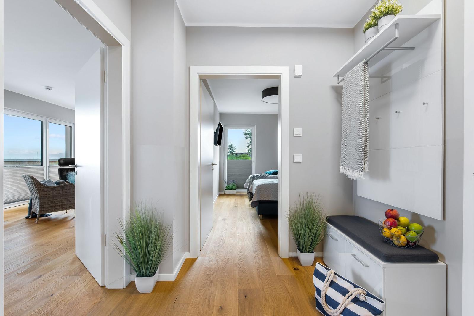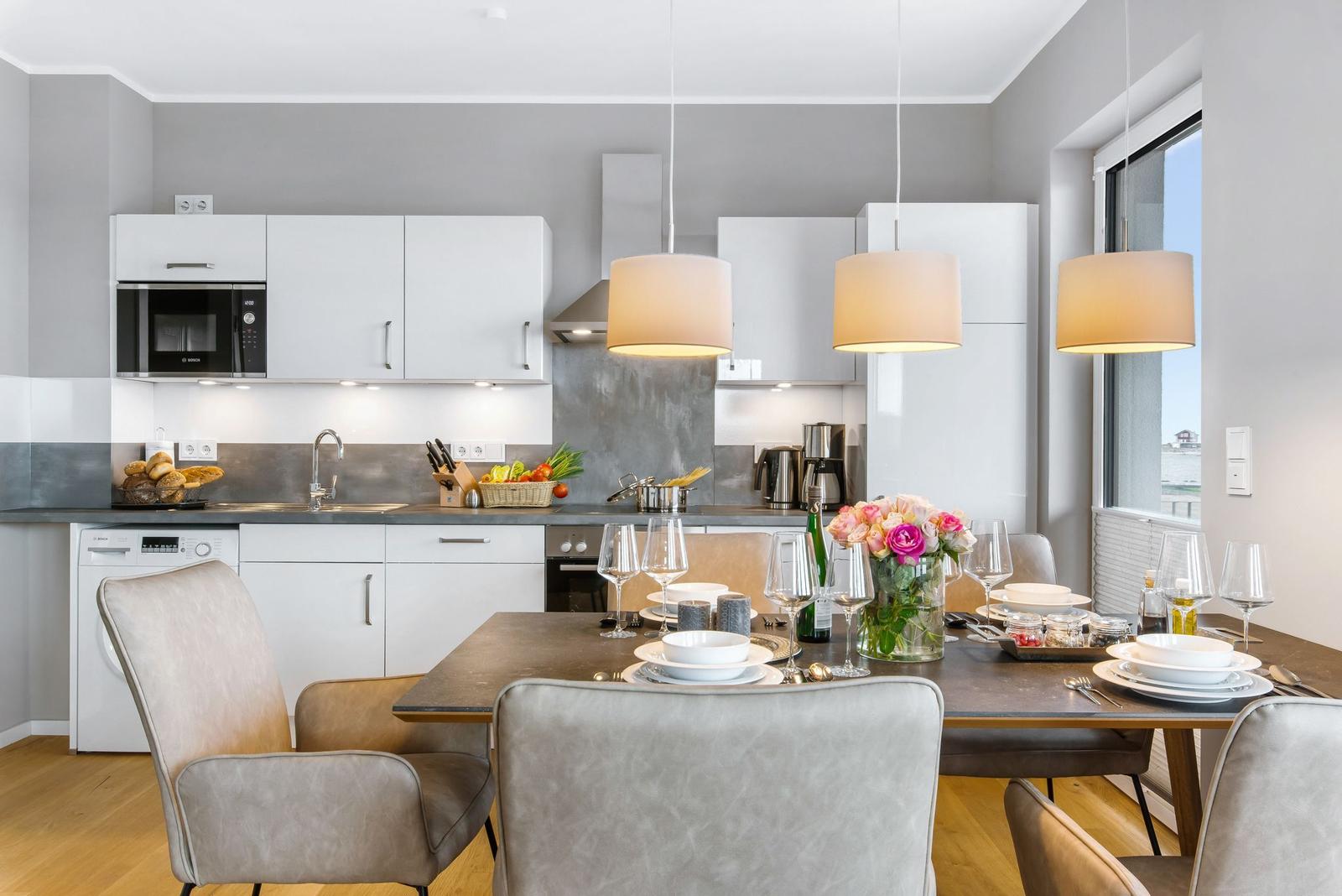 Die Ferienwohnung Strandperle, App. 3 Olpenitz, zeichnet sich durch ihre exklusive Lage direkt an der Ostsee aus. Mit 98 m² Wohnfläche bietet sie Platz für bis zu vier Personen und umfasst zwei Schlafzimmer sowie einen lichtdurchfluteten Wohnbereich. Die offene Küche ist modern ausgestattet mit Cerankochfeld, Backofen, Mikrowelle, Kühlschrank mit Gefrierfach, Spülmaschine und weiteren Küchengeräten. Der Wohnbereich lädt mit einem Sofa, Sessel und Kaminofen zu gemütlichen Stunden ein. Das Badezimmer verfügt über eine bodengleiche Dusche und ausreichend Ablageflächen. Zusätzliche Annehmlichkeiten umfassen Waschmaschine, Bügelbrett und Bügeleisen. Ein besonderes Highlight ist die überdachte Terrasse mit Meerblick. Haustiere sind willkommen, und ein Hochstuhl sowie ein Babybett sind ebenfalls vorhanden. WLAN und Fußbodenheizung sorgen für Komfort, während ein privater Parkplatz in der Tiefgarage bereitsteht.